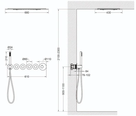 - Размер верхнего душа 68 см