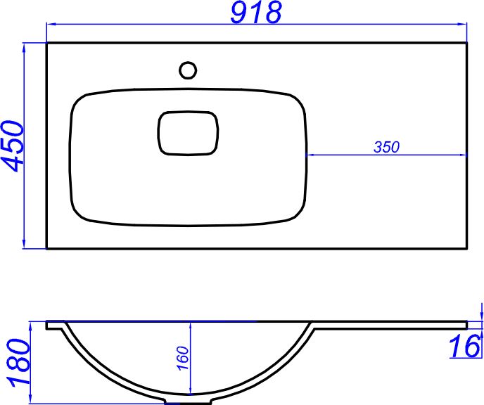 - Форма раковины Прямоугольная