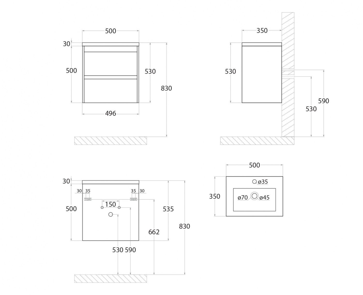 - Глубина 35 см