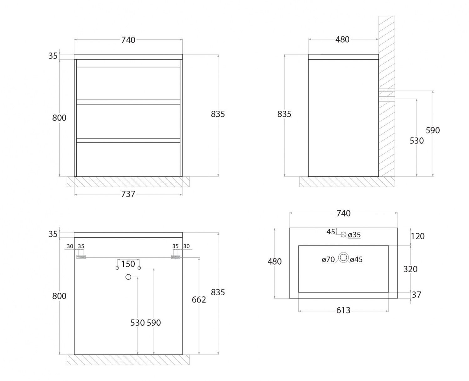 - Ширина 75 см