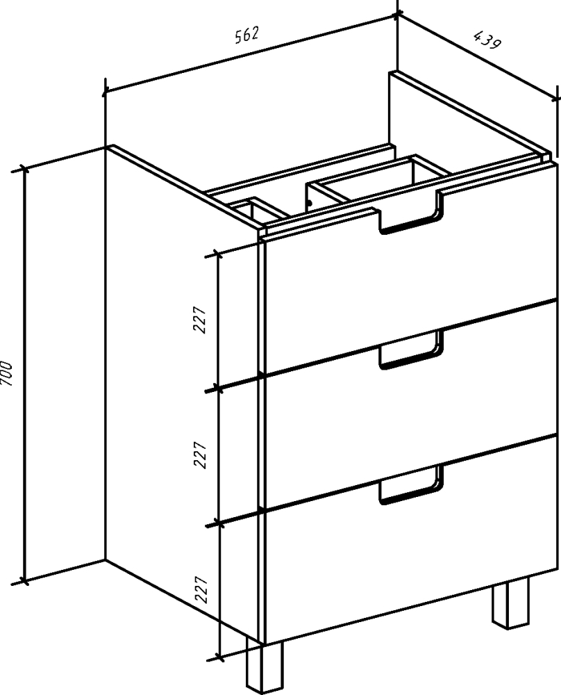 Мебель для ванной Bellezza Пегас 60 напольная 3 ящика бежевая