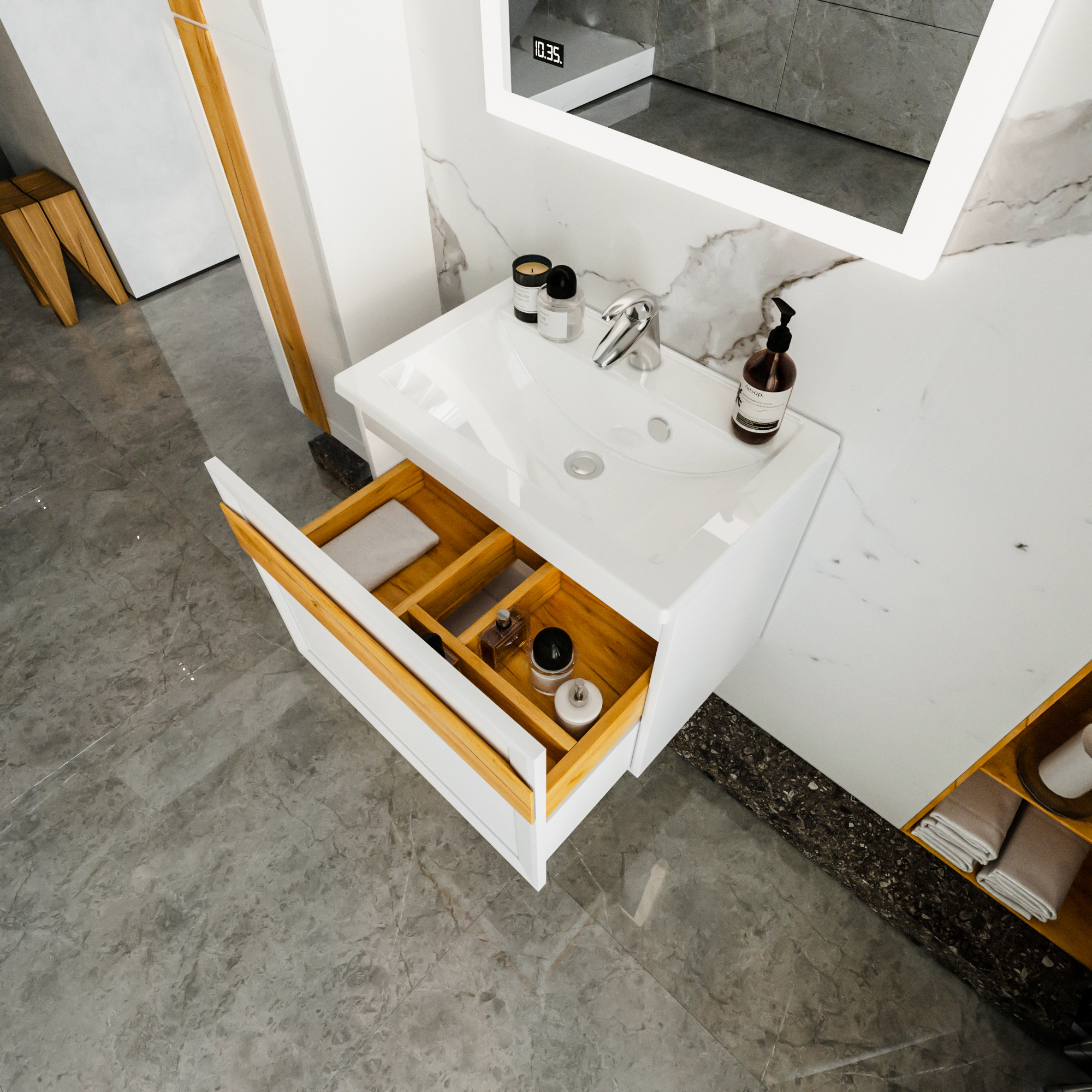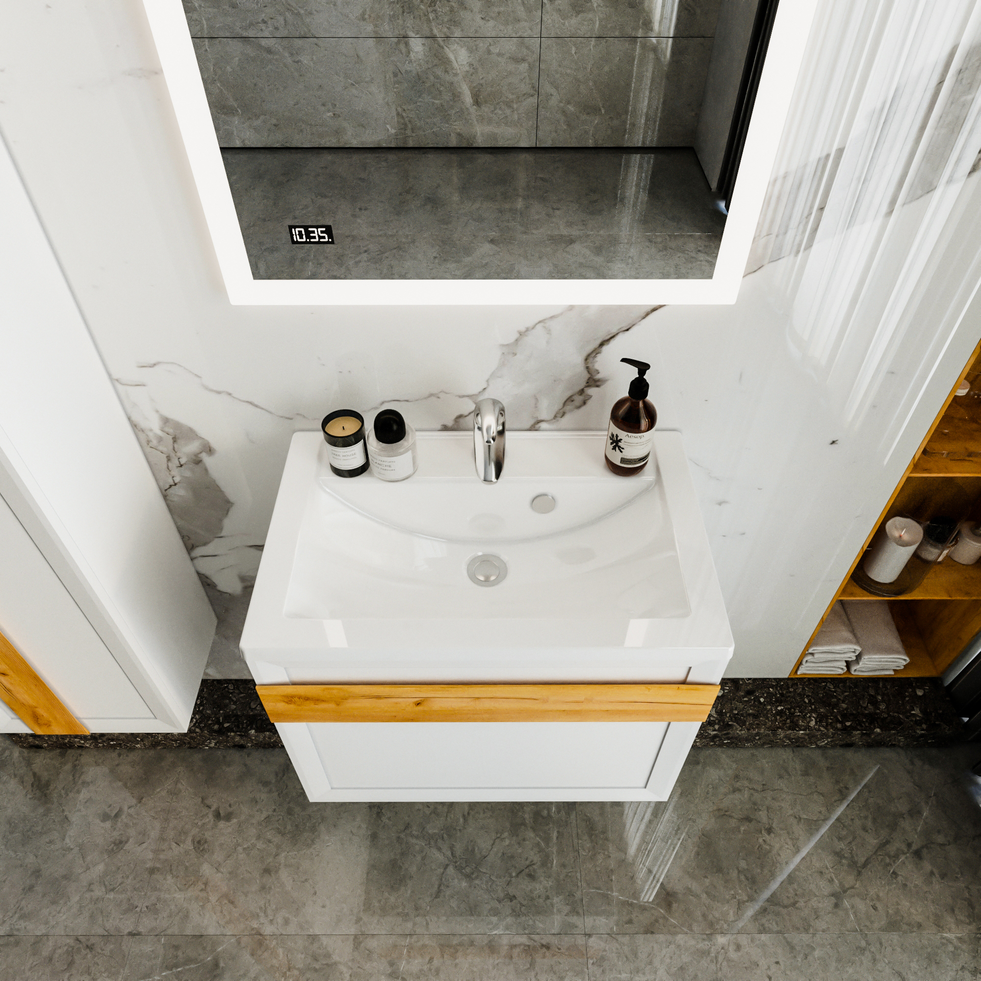 - Материал раковины Литьевой мрамор