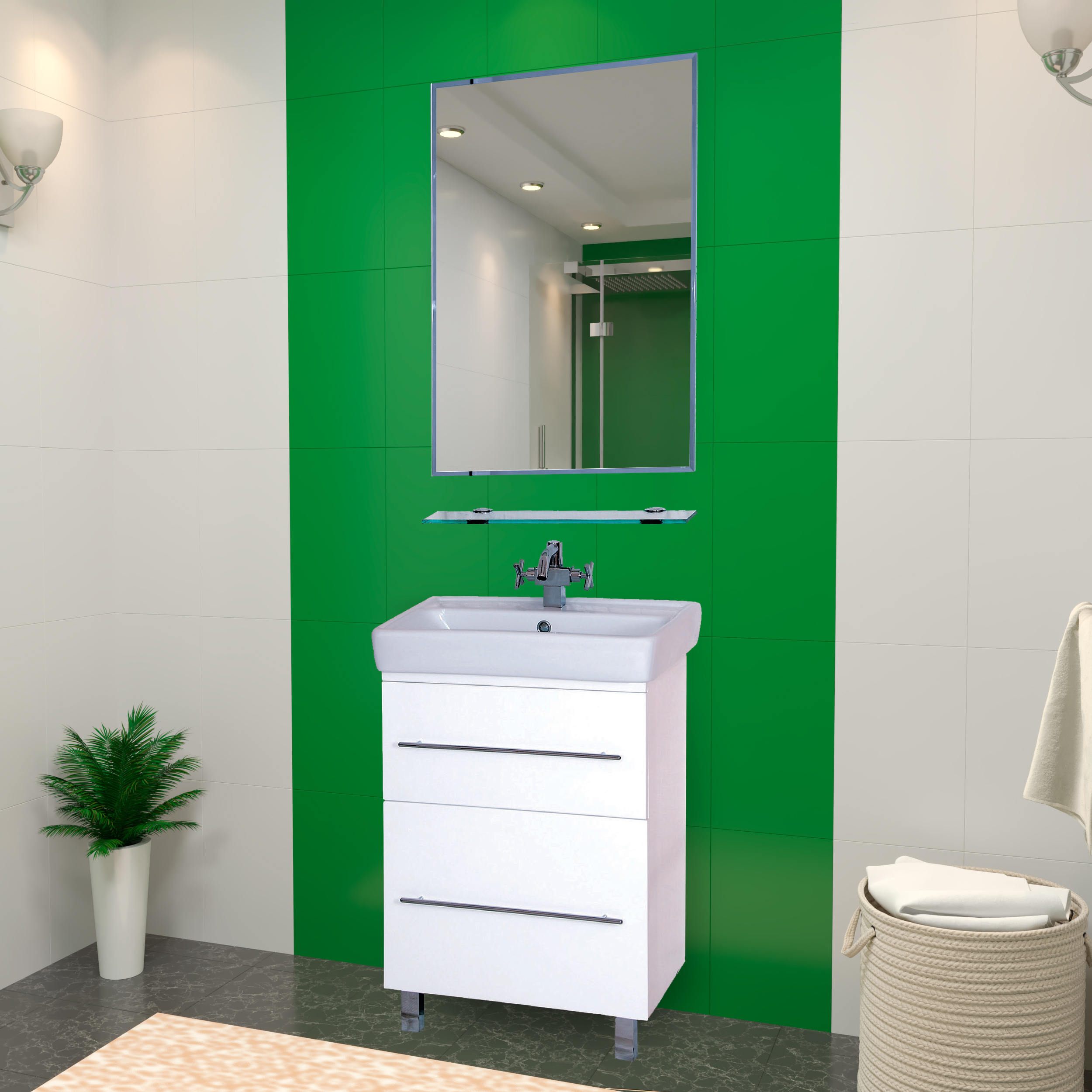 Мебель для ванной Misty Елена 60 белая, с 2-мя ящиками