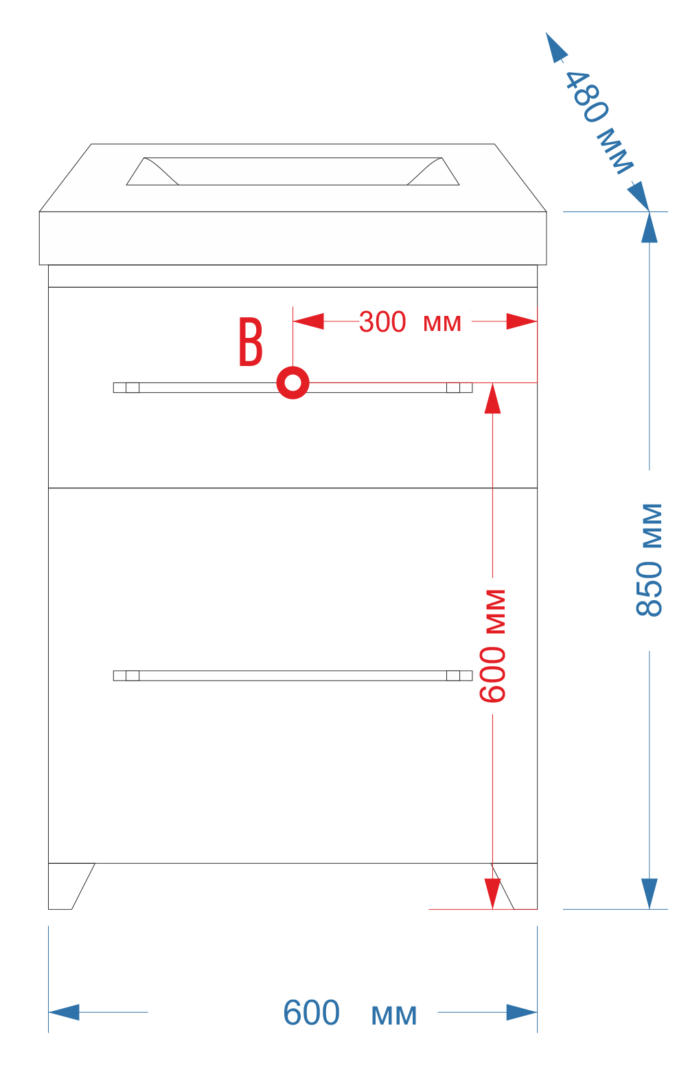 - Глубина 48 см