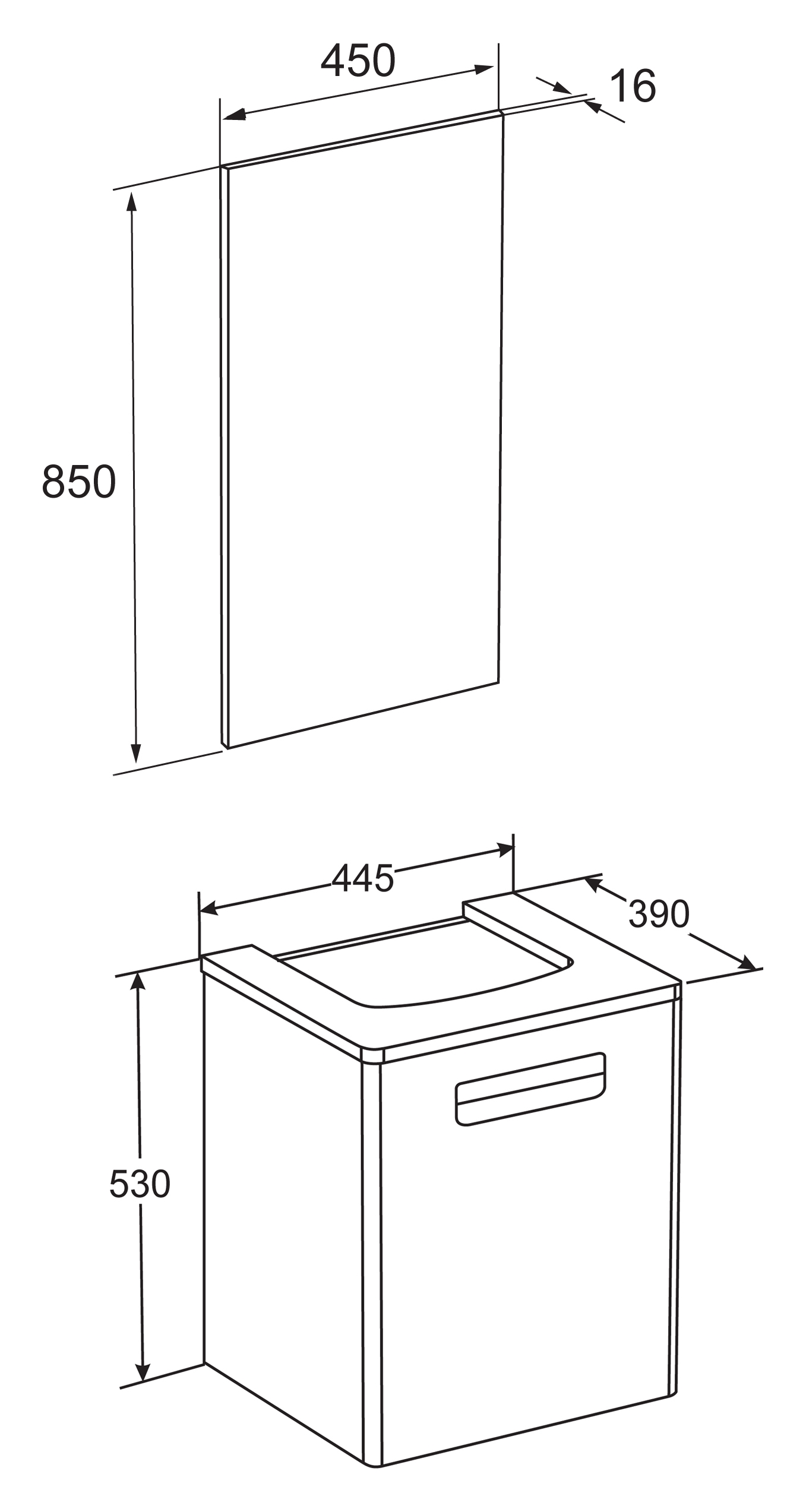 - Ширина 45 см