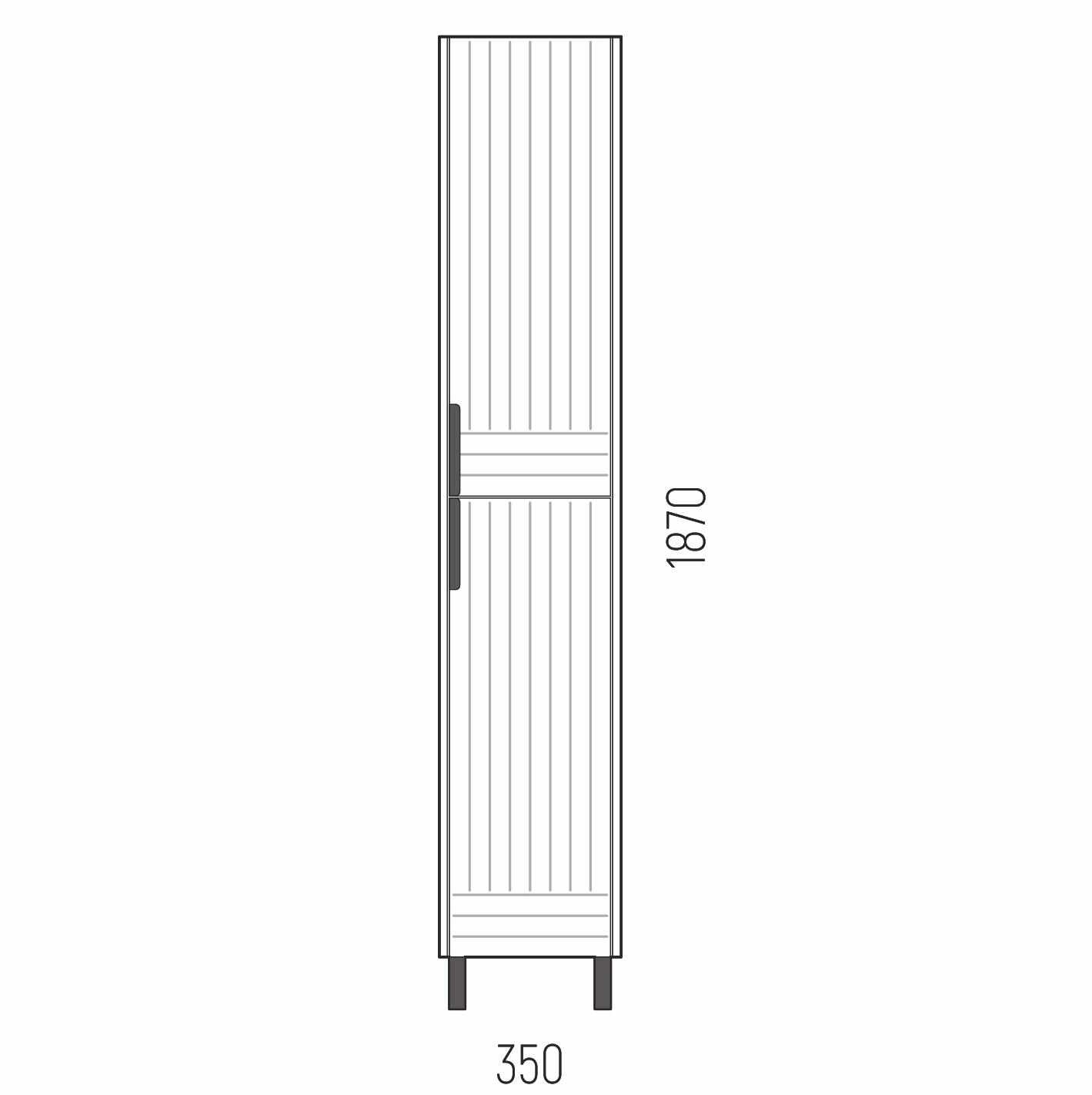 Шкаф-пенал коллекции "Терра" оснащен двумя дверками с доводчиками. Позади вкладные полки с возможностью регулировки по высоте. Шкаф-пенал является универсальным, то есть перевернув его, можно расположить двери справа или слева, путем перекручивания опор. Ручки и опоры выполнены из металла цвета "Черный муар".