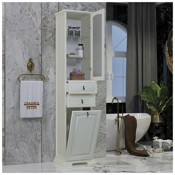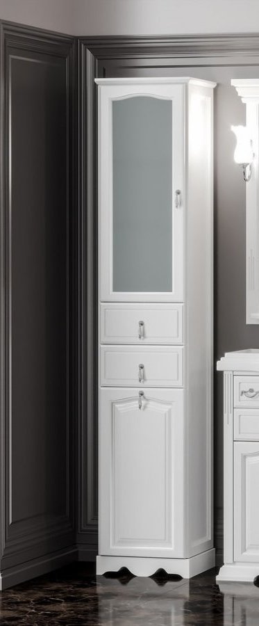 Пенал Опадирис Риспекто 40 в матовом белом цвете – это удобный и невероятно красивый мебельный атрибут ванной комнаты в классическом стиле. Выполненный из натурального массива бука, он имеет универсальную светлую однотонную окраску, что позволяет ему легко вписываться в любые цветовые интерьерные решения. Внутри пенала предусмотрены практичные отделения для хранения – внутренние полки, два выдвижных ящика и откидной фасад с корзиной для размещения белья. Петли для дверцы могут быть установлены как с левой, так и с правой стороны, не забудьте указать необходимый вариант в заказе.