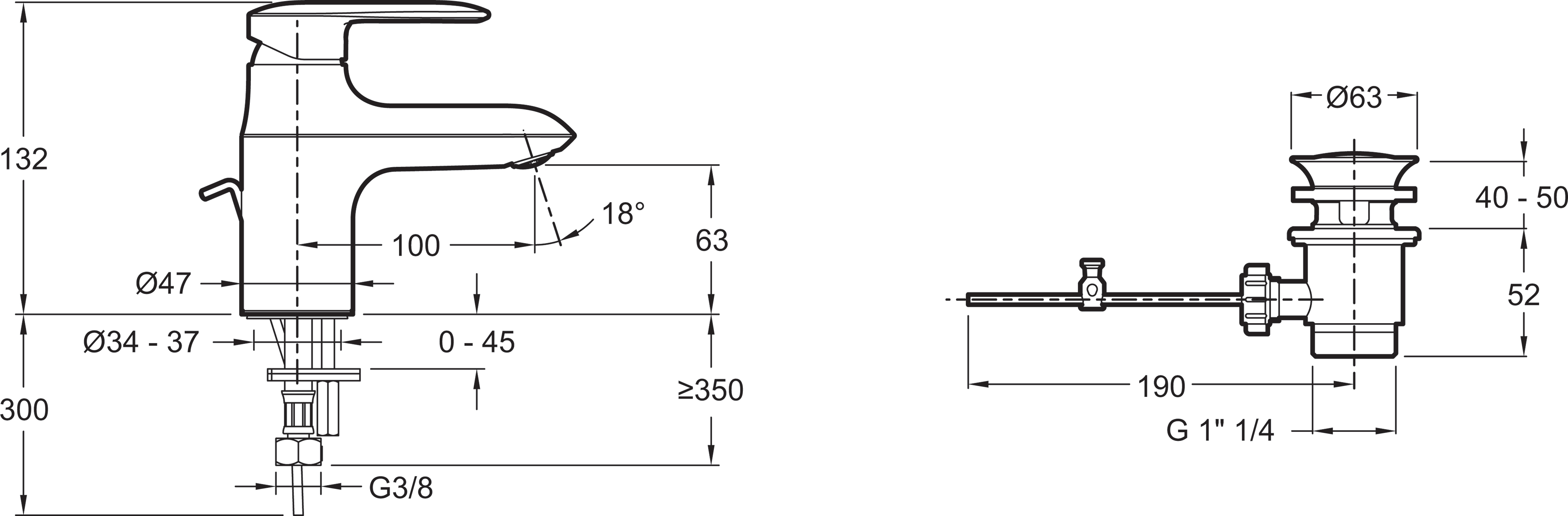 - Длина излива 10 см