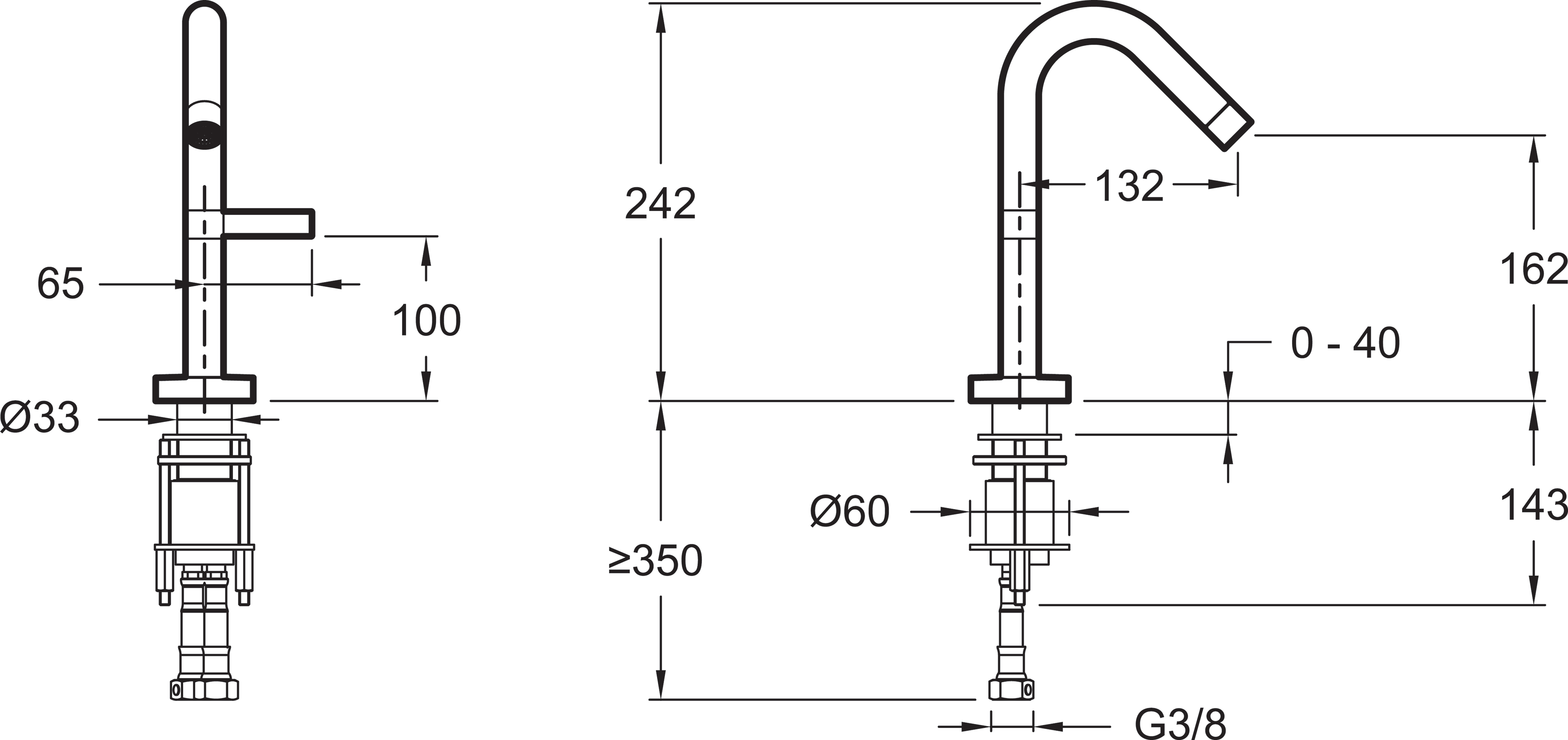 - Вращение излива Фиксированный