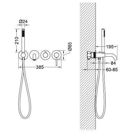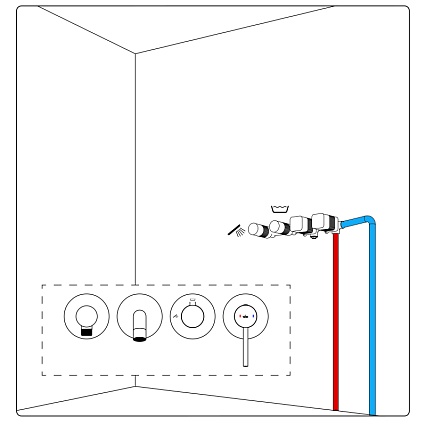 - Держатель ручной лейки встроенный с подключением шланга душа - 1 шт