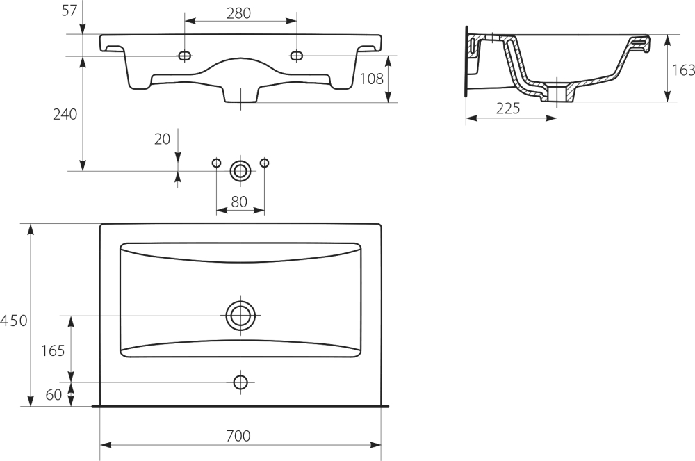 Тумба c раковиной Bellezza Пегас 70 подвесная 2 ящика бежевая