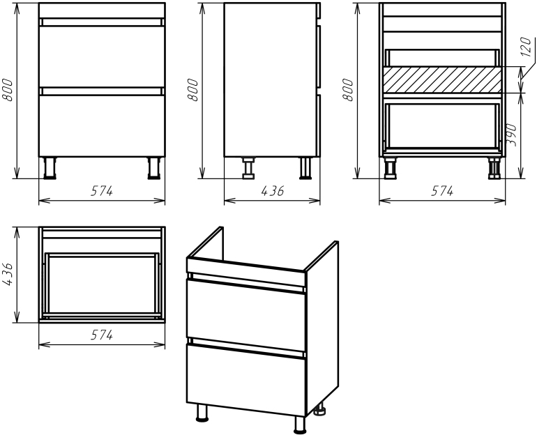 Тумба для комплекта Misty Енисей 60 2 ящика