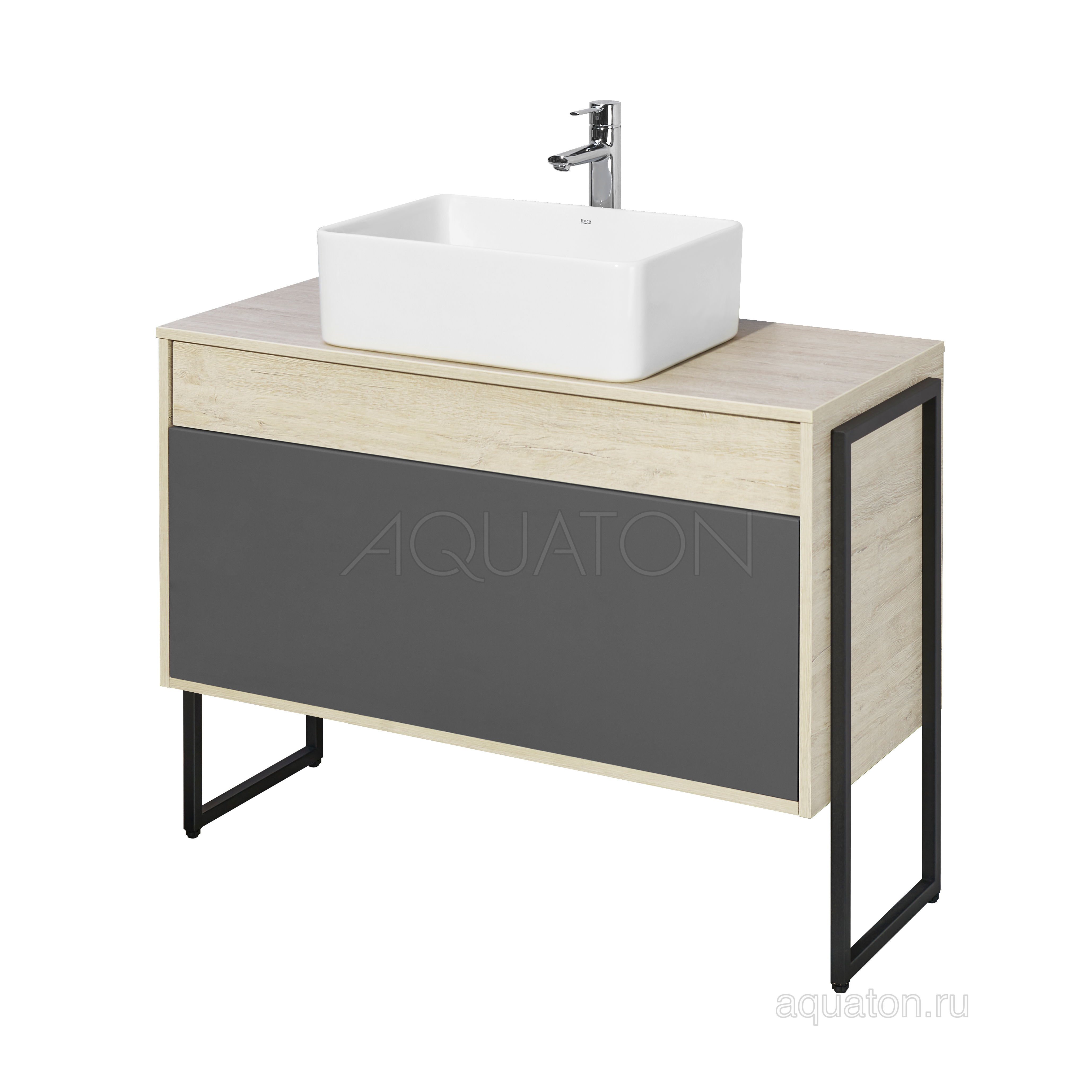 Тумба под раковину Aquaton Лофт Урбан 100 серый графит\дуб орегон