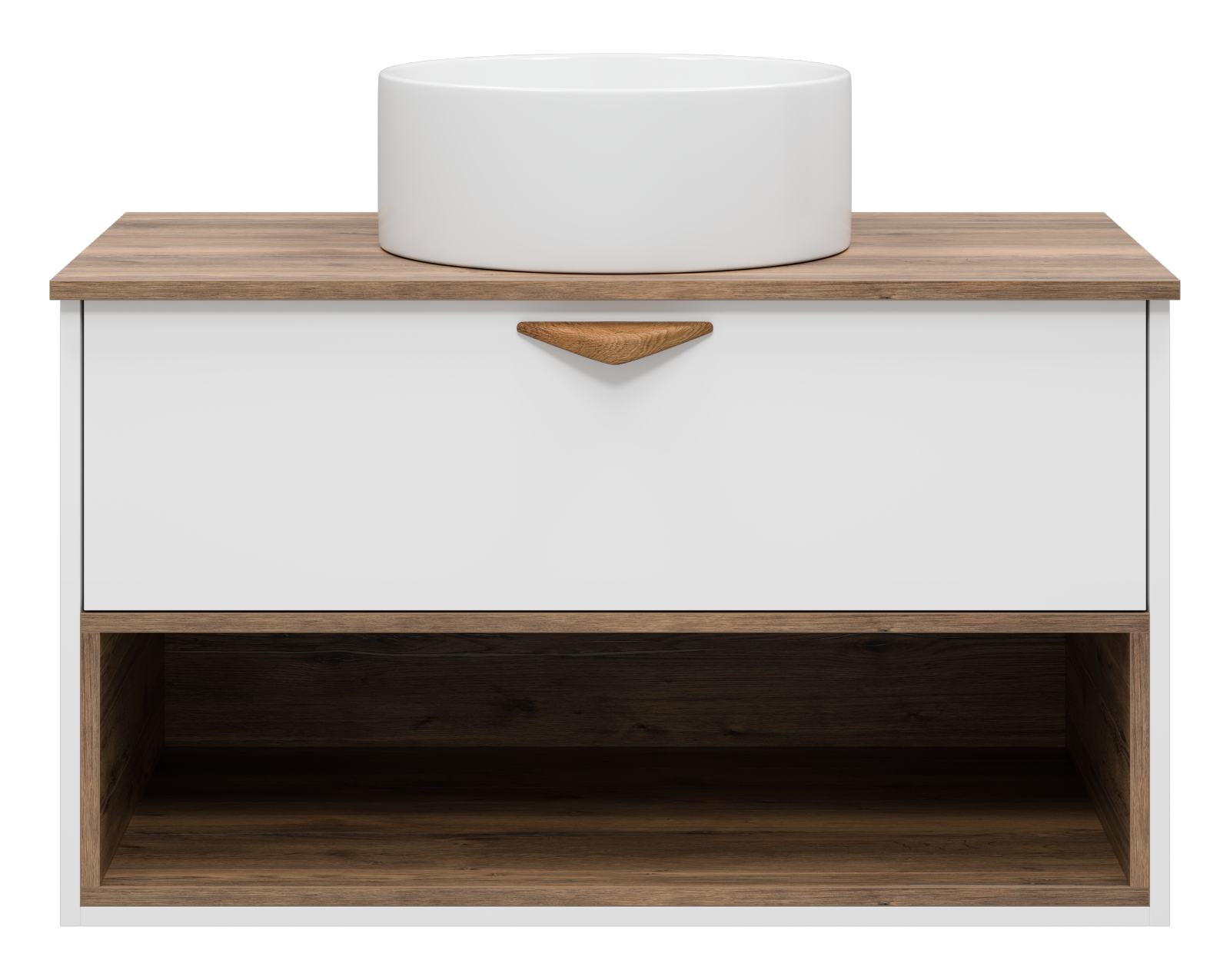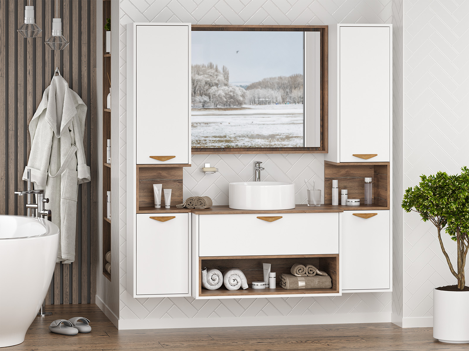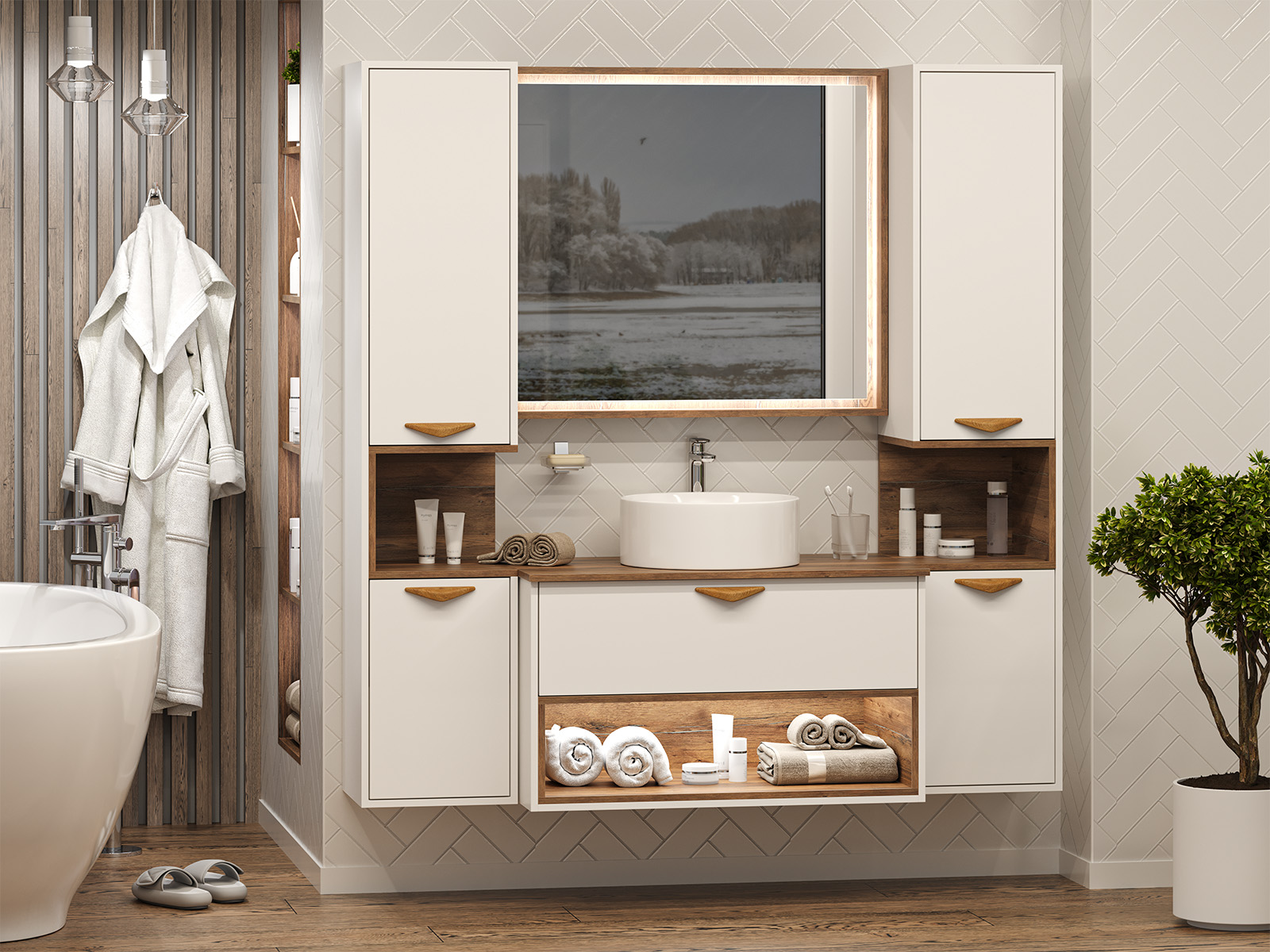 Тумба под раковину Brevita Bergen 90 с подсветкой подвесная дуб галифакс олово/белый