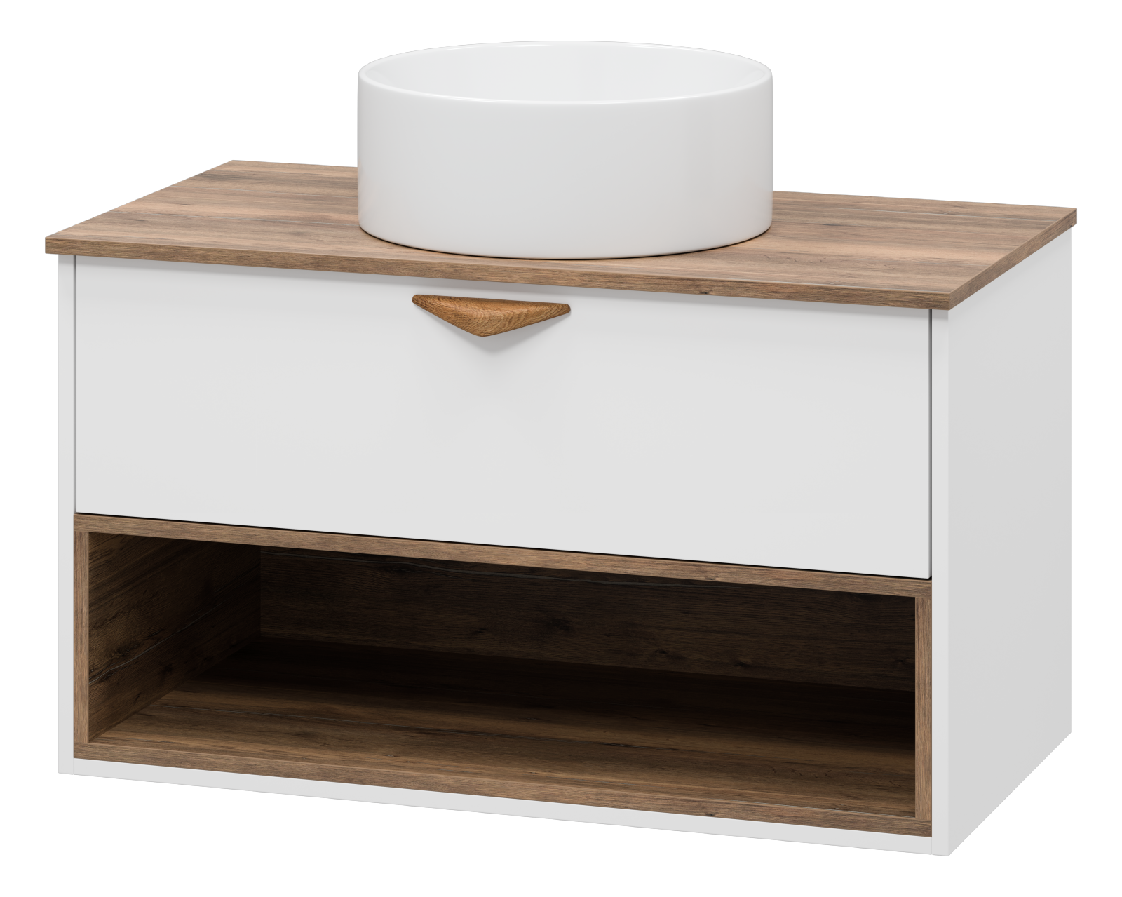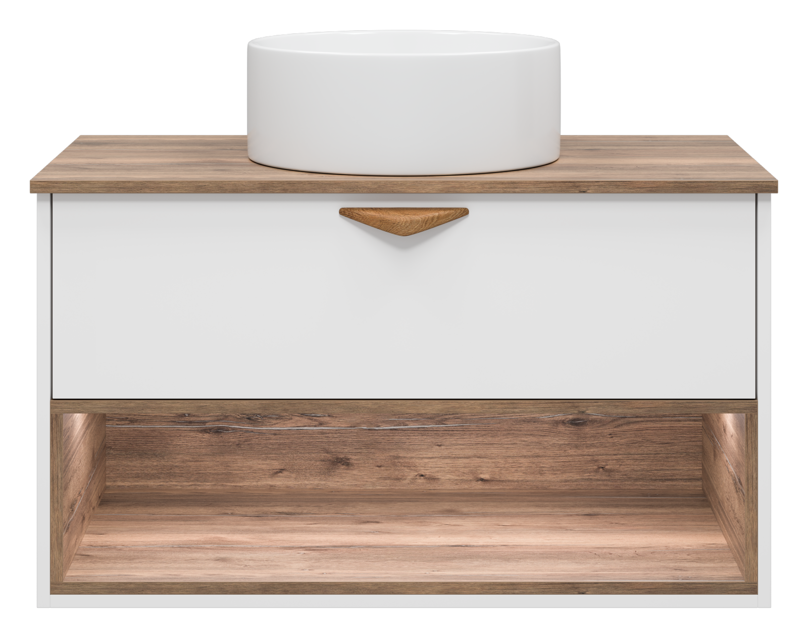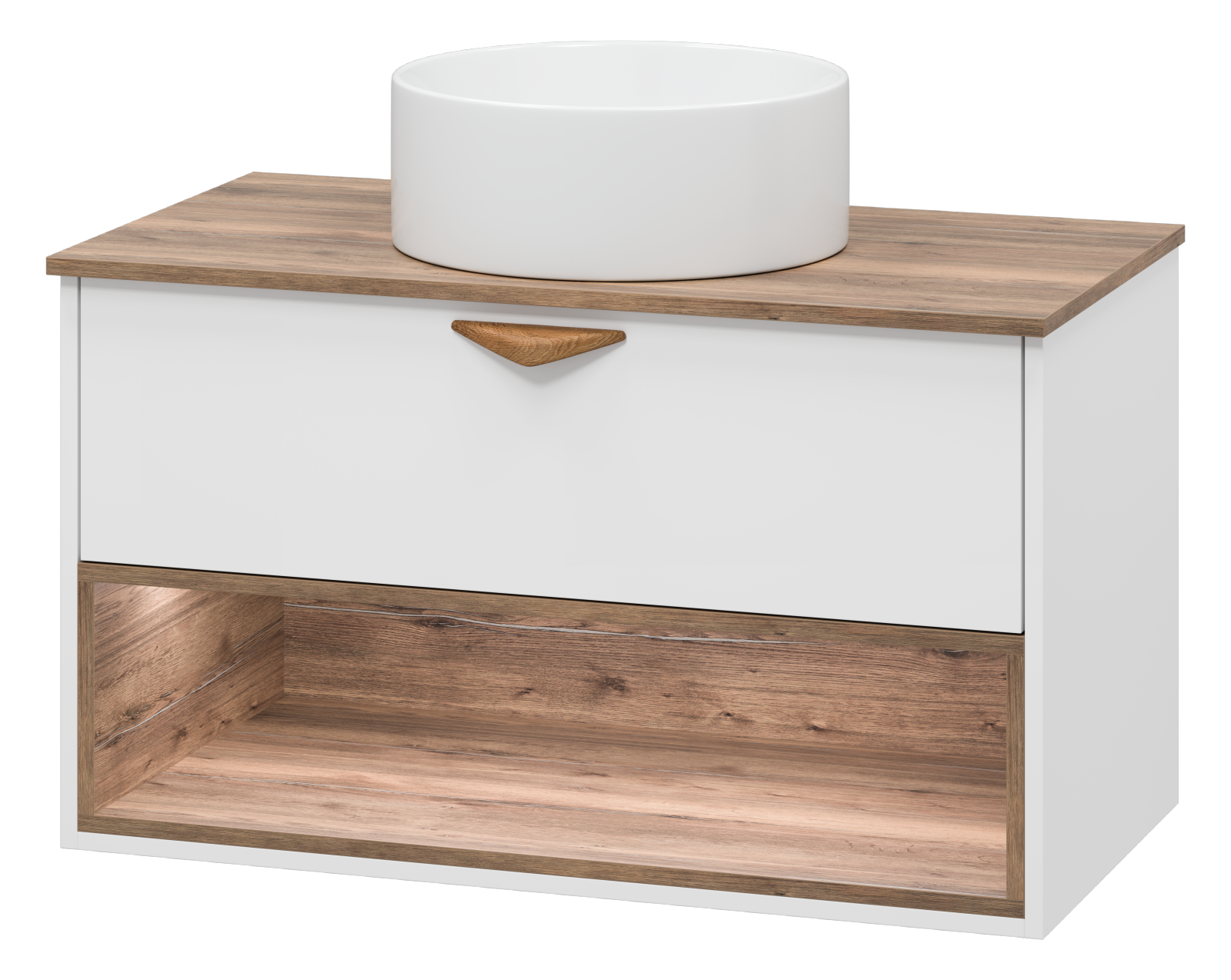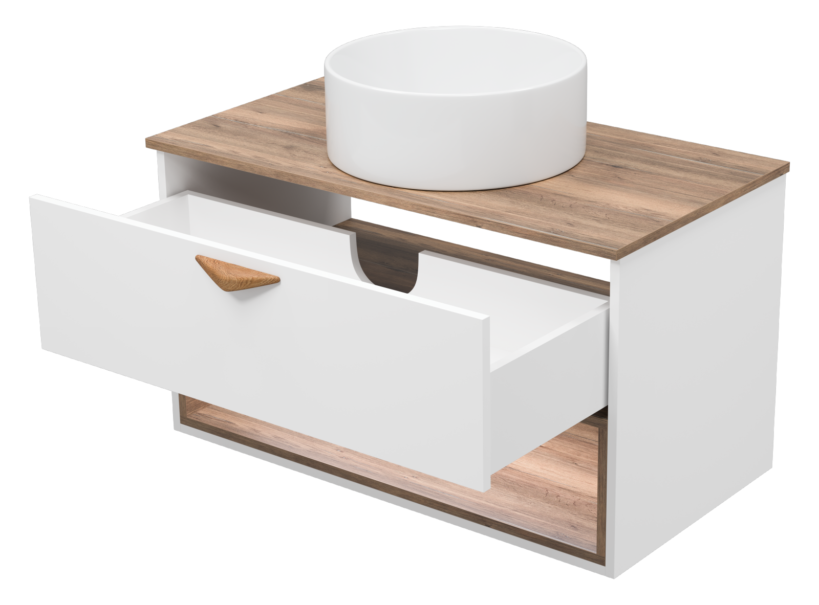Тумба под раковину Brevita Bergen 90 с подсветкой подвесная дуб галифакс олово/белый