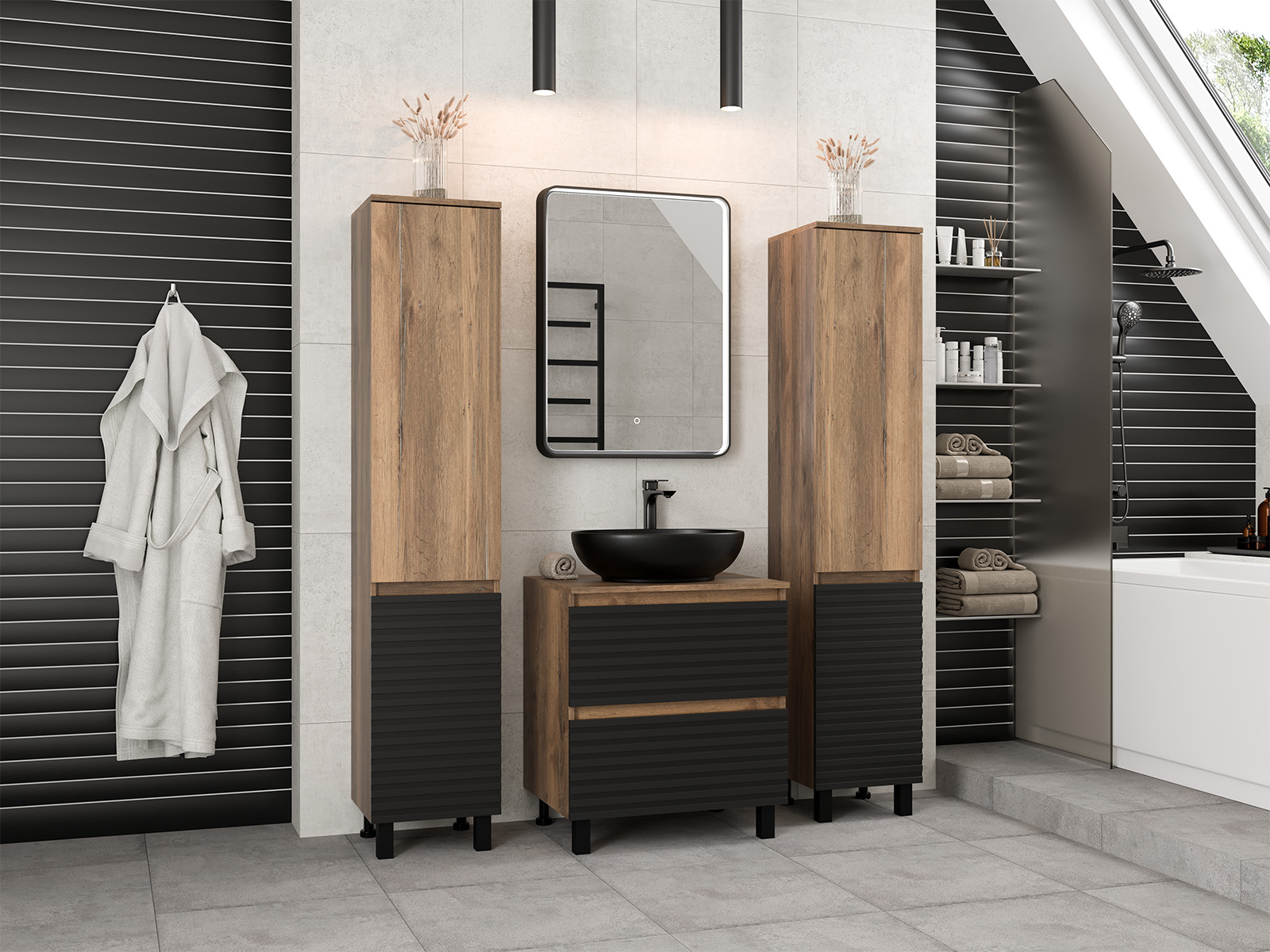 Тумба под раковину Brevita Dakota 60 напольная дуб галифакс олово/черный