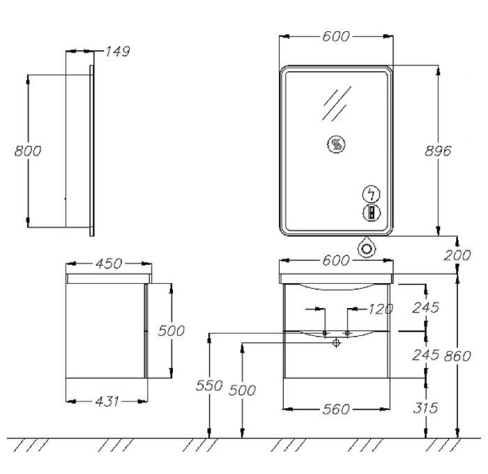 Тумба под раковину Opadiris Элеганс 60 белый матовый