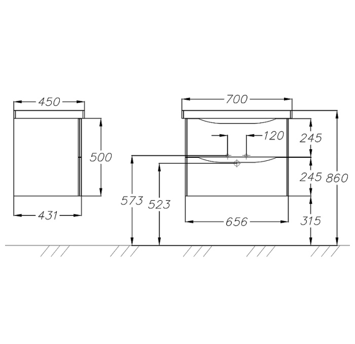 Тумба под раковину Opadiris Элеганс 70 белый матовый