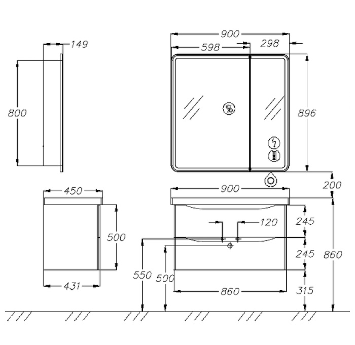 Тумба под раковину Opadiris Элеганс 90 белый матовый