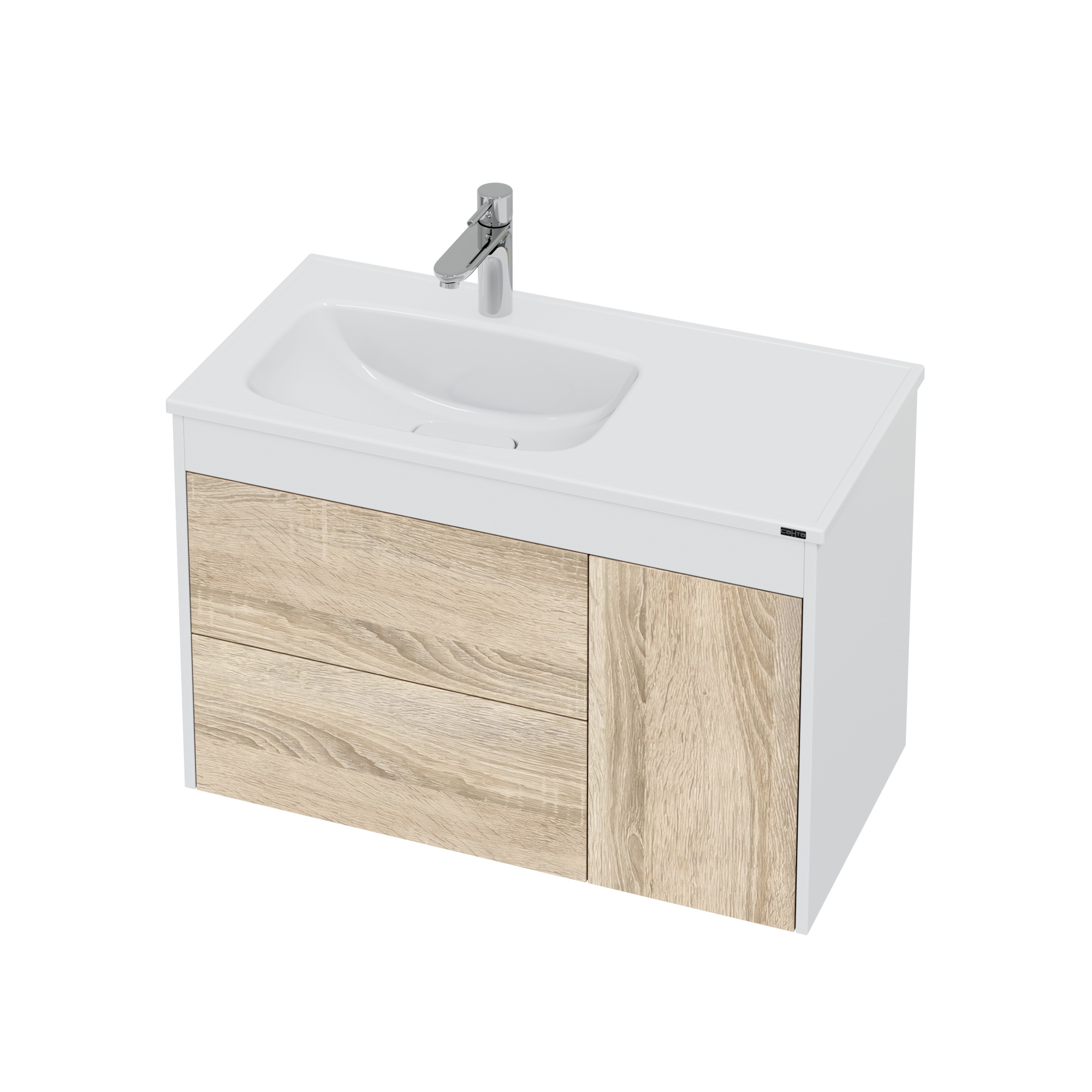 Тумба под раковину СаНта Меркурий 90 2 ящ. подвесная янтарный/белый