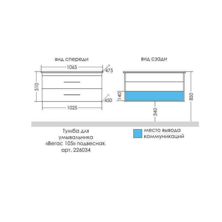 Коллекция Вегас - современная и стильная мебель по приемлемой цене. Тумба подвесная Вегас 105 для умывальника Оскар 105. Фасады мебели изготовлены из МДФ и покрыты белой ПВХ-пленкой. Боковины мебели выполнены из влагостойкого ЛДСП. В этой модели встроены два выдвижных ящика с плавным ходом и бесшумным закрыванием. В верхнем ящике организован доступ к подключению коммуникаций.