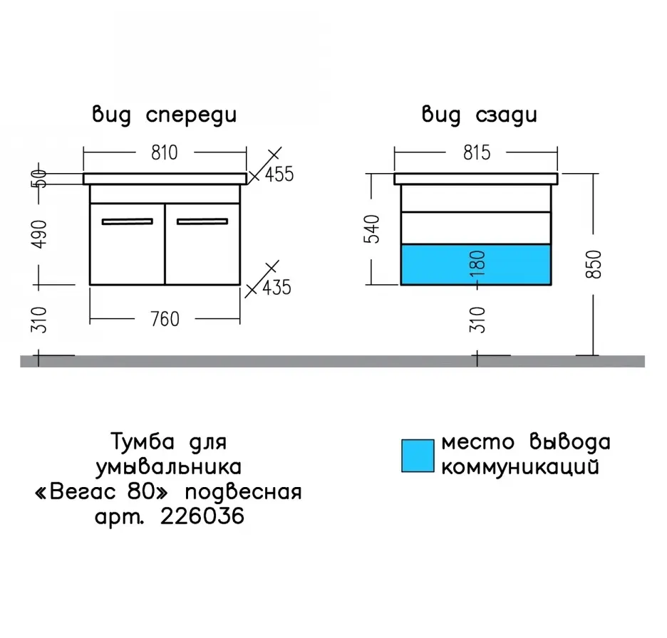Тумба под раковину СаНта Вегас 80 подвесная 2 двери