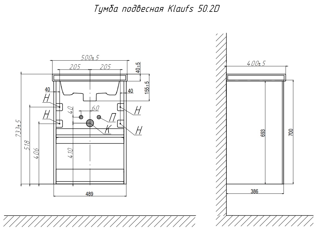 Тумба под раковину Velvex Klaufs 50 подвесная белая