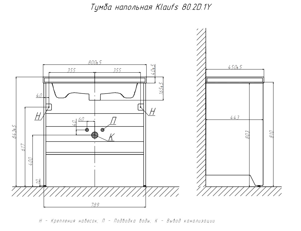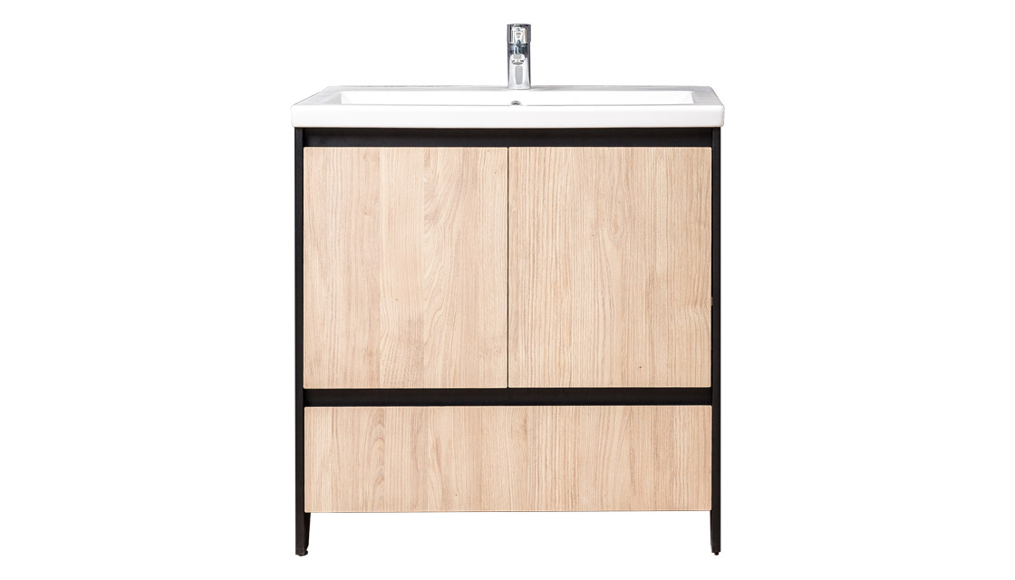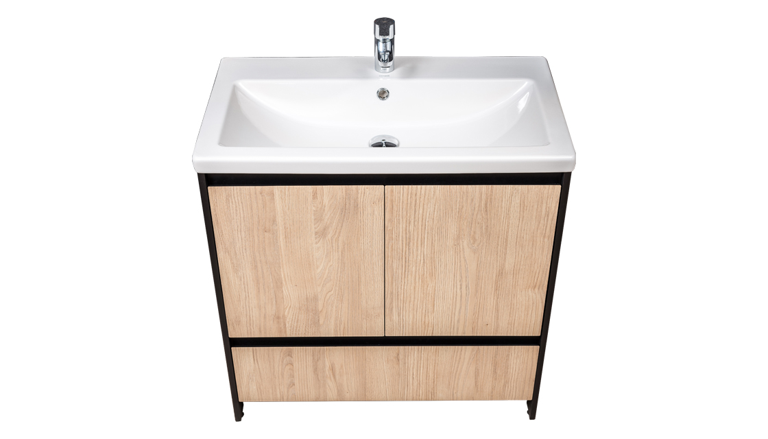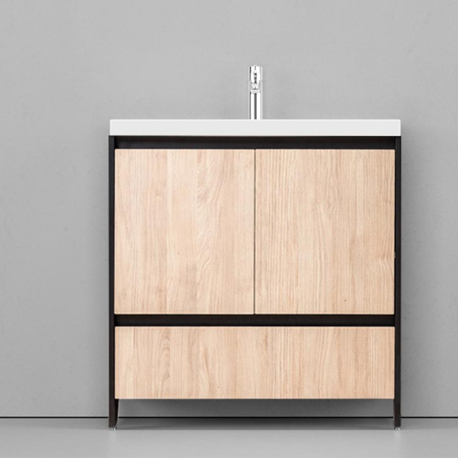 Тумба под раковину Velvex Klaufs 80 с 1 ящиком напольная черный/дерево