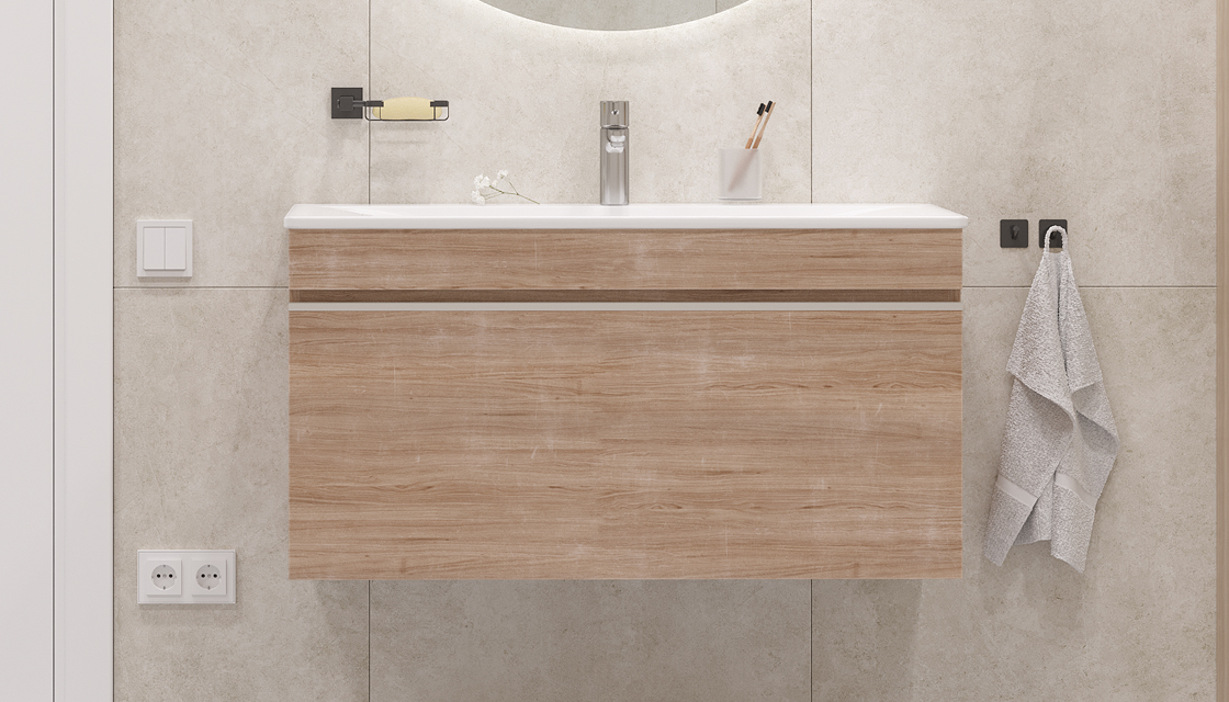 Тумба под раковину Velvex Pulsus 100 подвесная дуб сонома