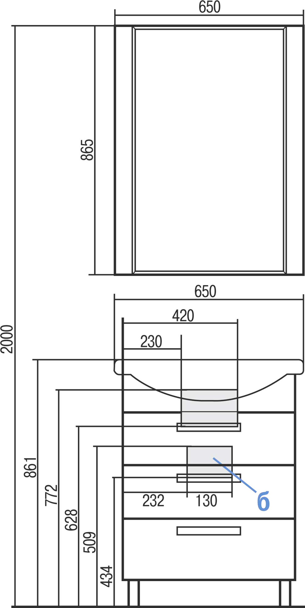 - Ширина 65 см