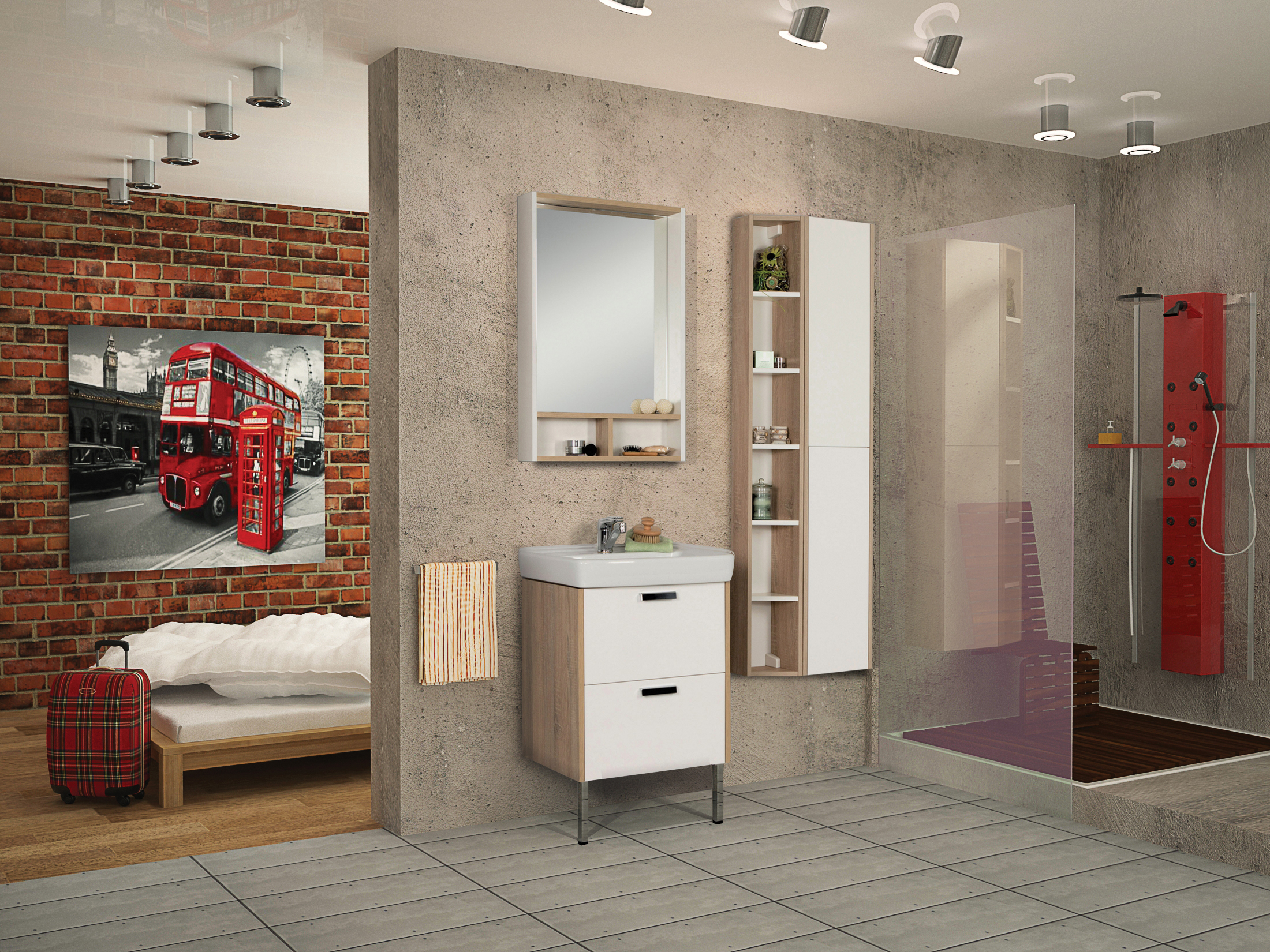 Тумба с раковиной Акватон Йорк 55 белый/дуб сонома