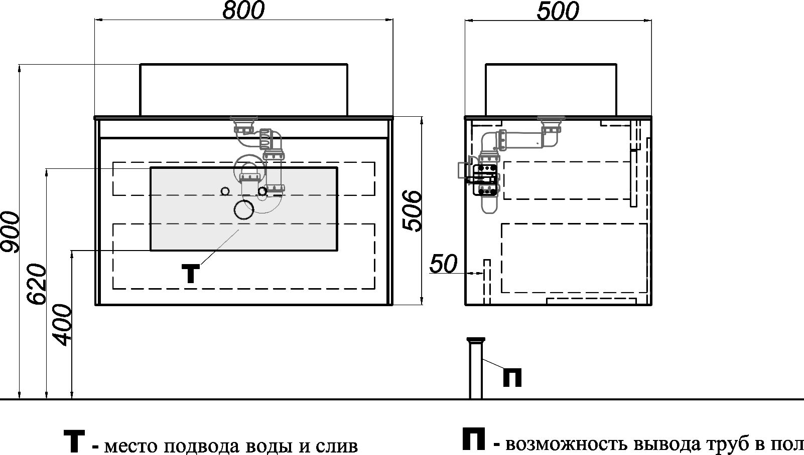 - Глубина 50 см