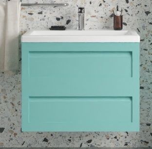 Тумба с раковиной из искусственного мрамора Art&Max Platino 75 подвесная светло зеленая. Система хранения: 2 выдвижных ящика. Тумба оснащена доводчиками скрытого монтажа с системой Soft close (плавного закрывания). Раковина сифоном не комплектуется.