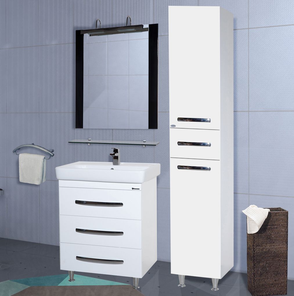 - Тумба с раковиной Bellezza Рокко 50 белая напольная 3 ящика
