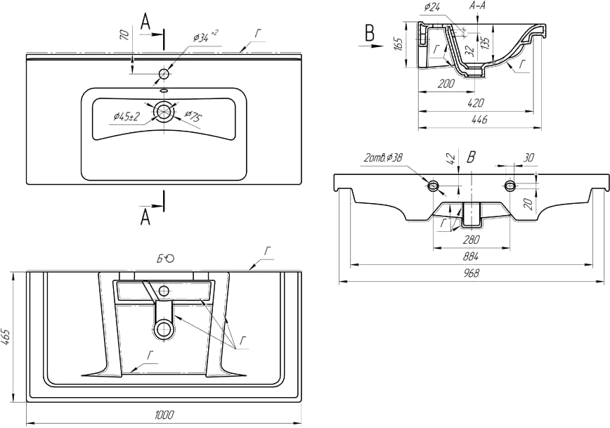 Тумба с раковиной Bellezza Санриса 100 подвесная с 2 ящ. белая