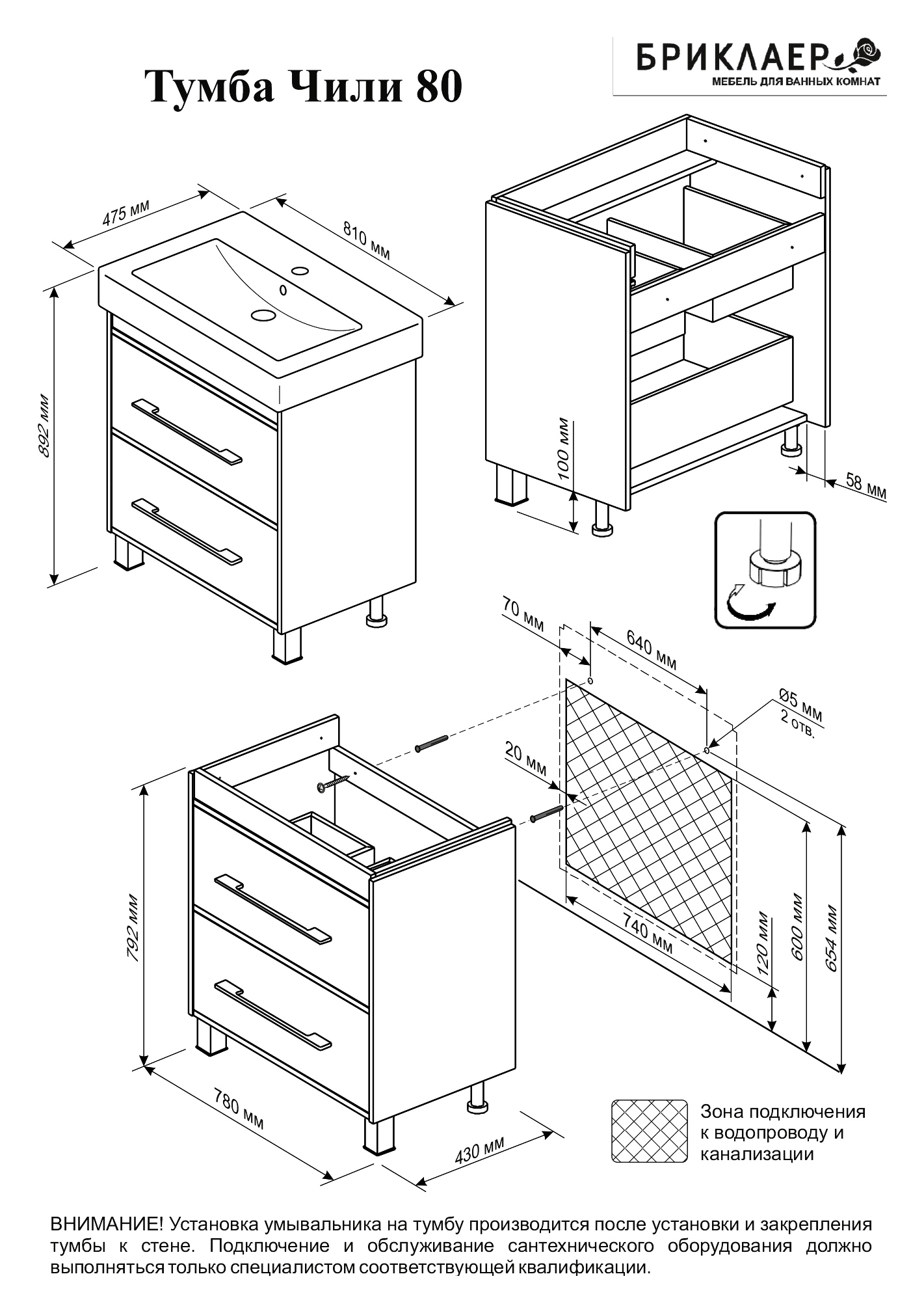 Материалы, используемые при изготовлении тумбы Бриклаер Чили 80, соответствуют европейским стандартам качества и экологической безопасности. Все материалы адаптированы к агрессивной влажной среде ванных комнат, благодаря этому тумба сохранит свой внешний вид на долгие годы. Корпус выполнен из ДСП, покрытие корпуса матовое. Качество подтверждается сертификатами и сроком гарантии 2 года.