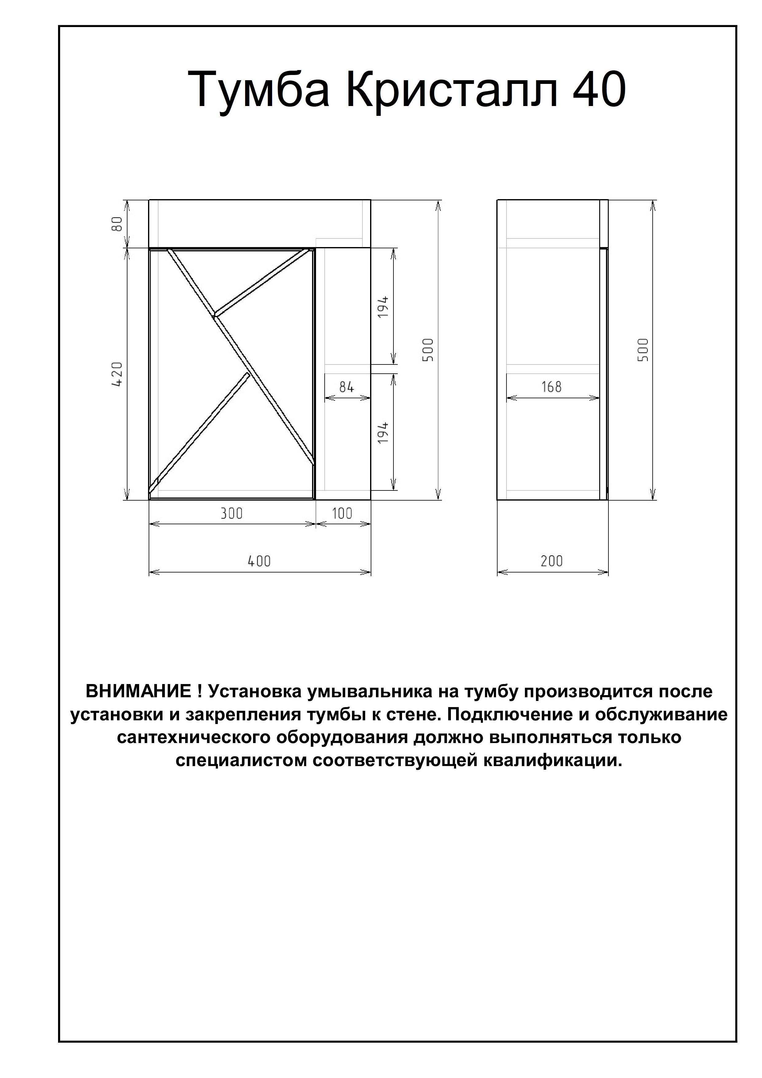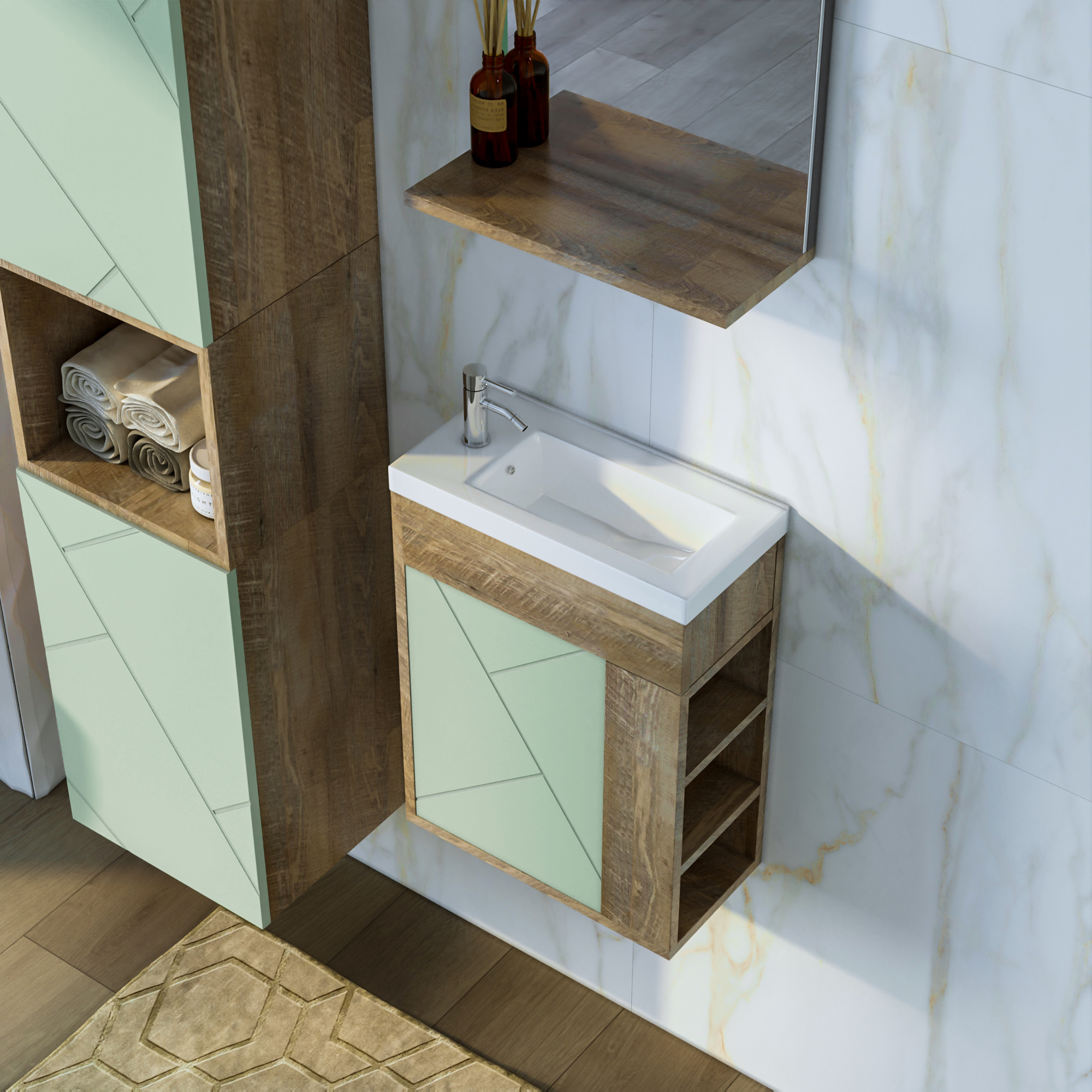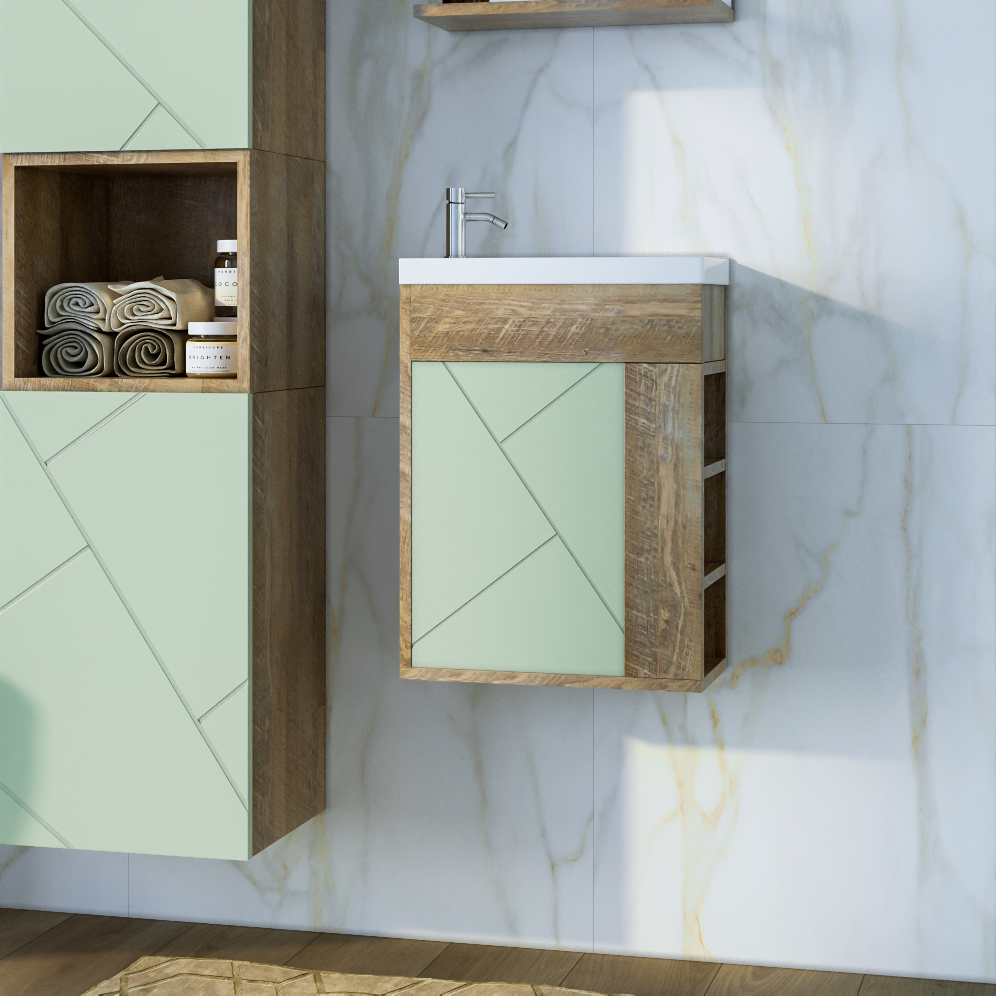 Тумба с раковиной Бриклаер Кристалл 40 универсальная фисташка/дуб гранж песочный