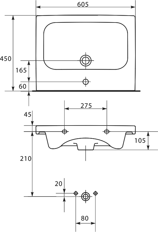 - Форма раковины Прямоугольная