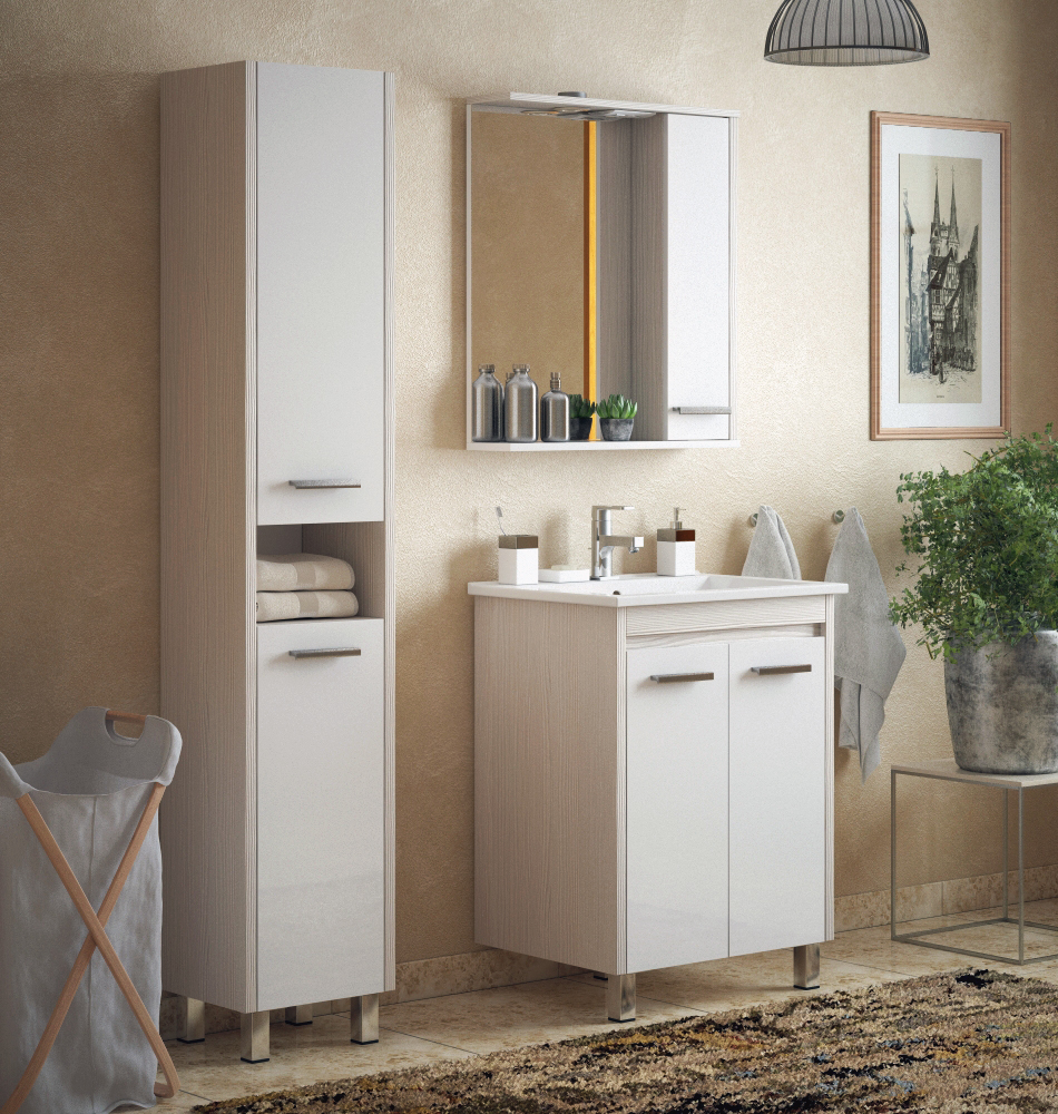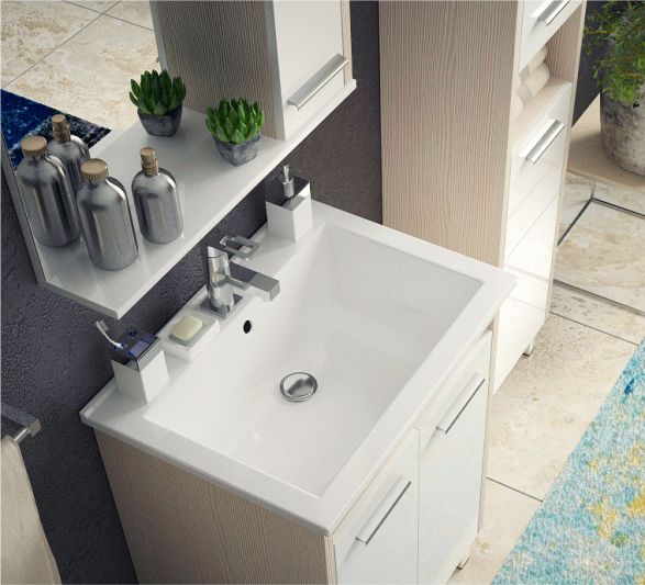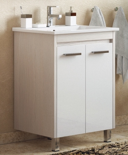У тумбы 2 распашные двери с полками. 4 металлические опоры. Боковины выполнены из ЛДСП 26 мм толщиной.