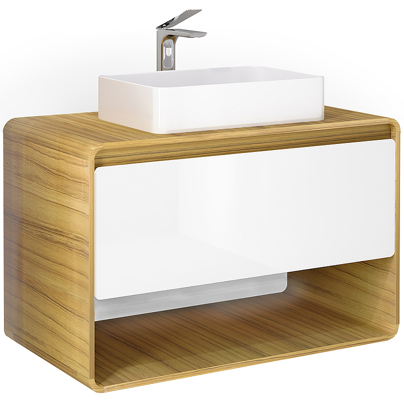 Тумба с раковиной Jorno Ronda 100 подвесная дуб/белый