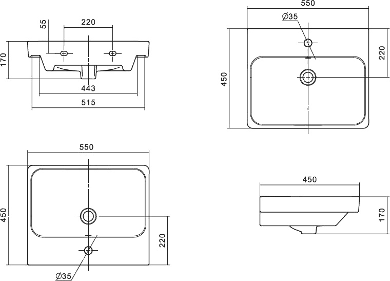 - Форма раковины Квадратная