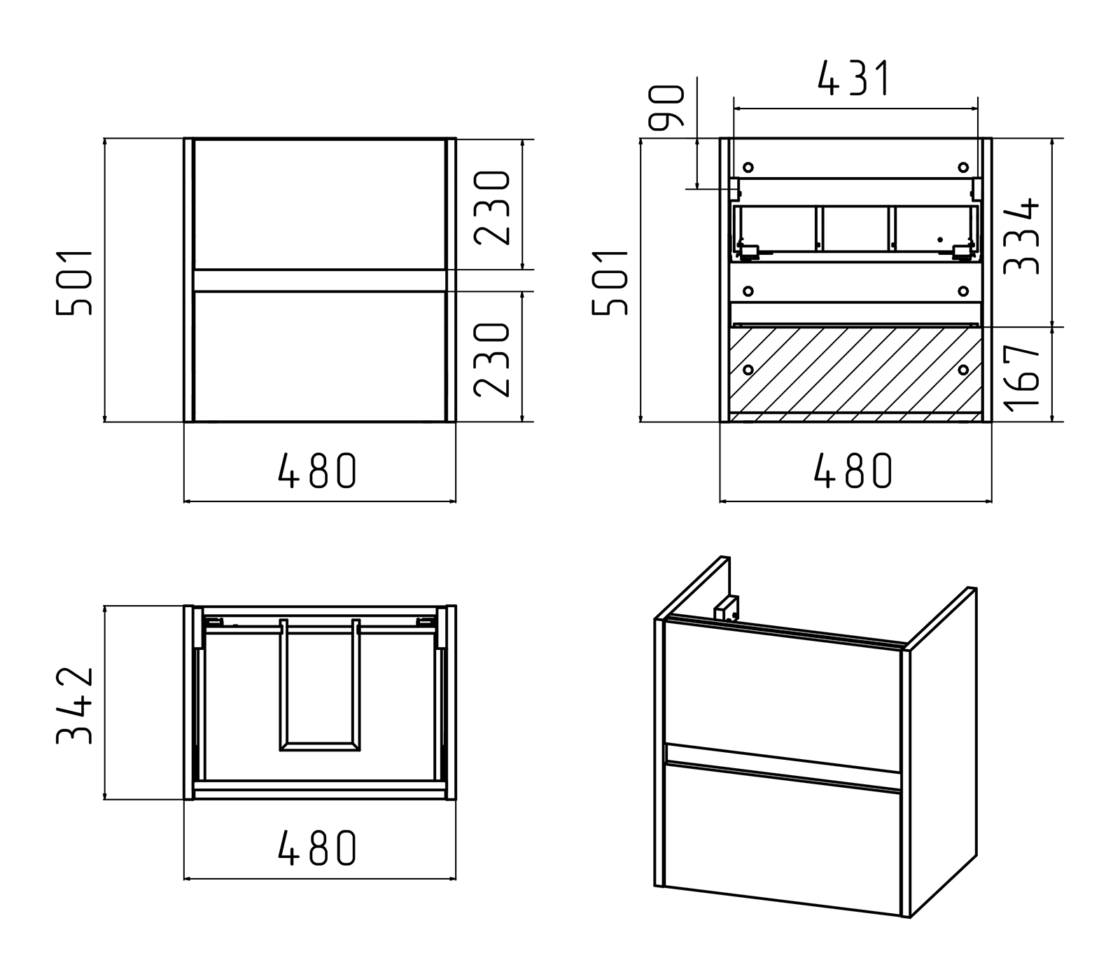 - Тумба с раковиной Misty Алиса 50 с 2 ящ. подвесная