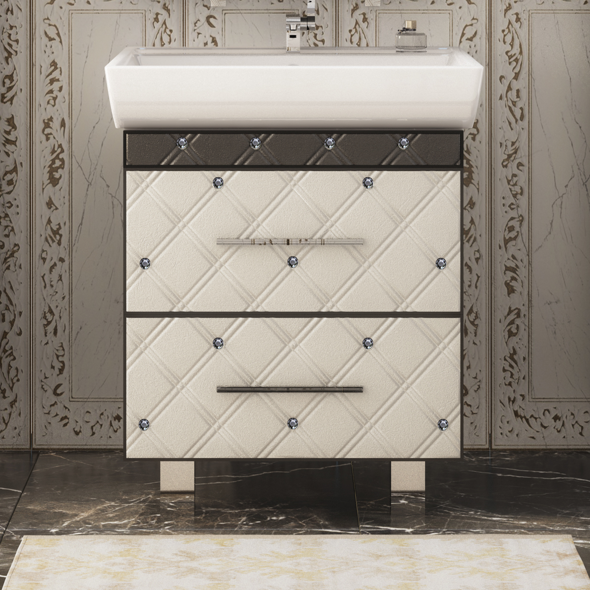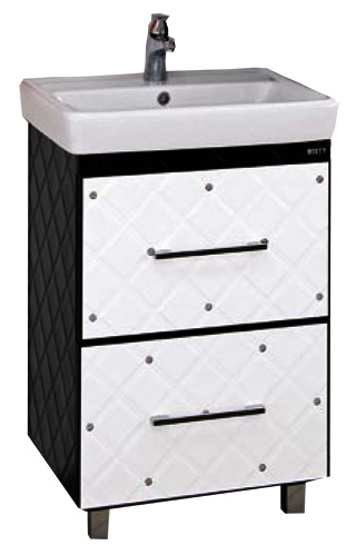 Тумба с раковиной Misty Гранд Lux 60 бело-черная кожа cristallo, 2 ящика