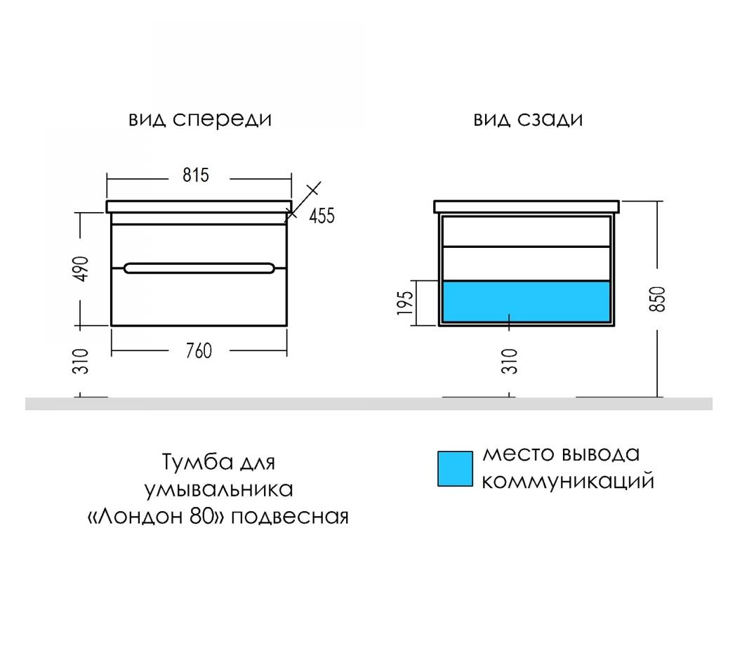 Тумба с раковиной СаНта Лондон 80 2 ящика подвесная