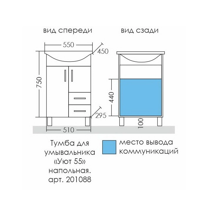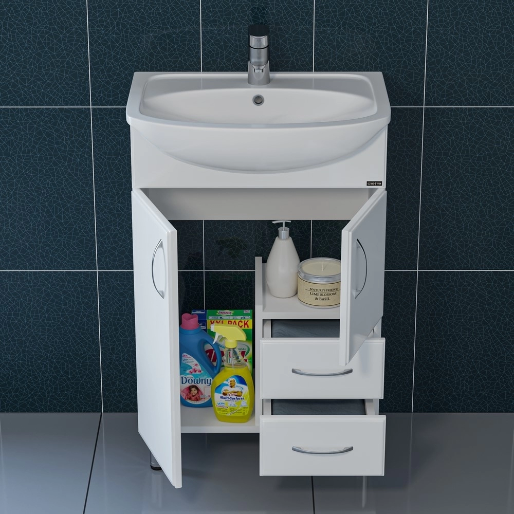 Тумба с раковиной СанТа Уют 55 2 двери, 2 ящика