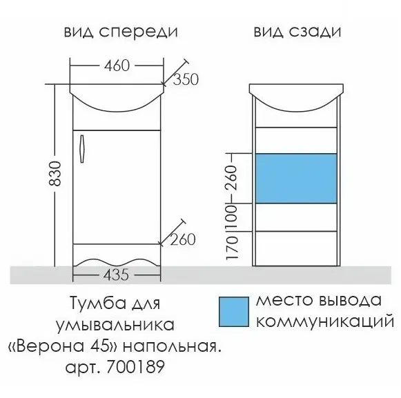 Тумба с раковиной СанТа Верона 45 напольная