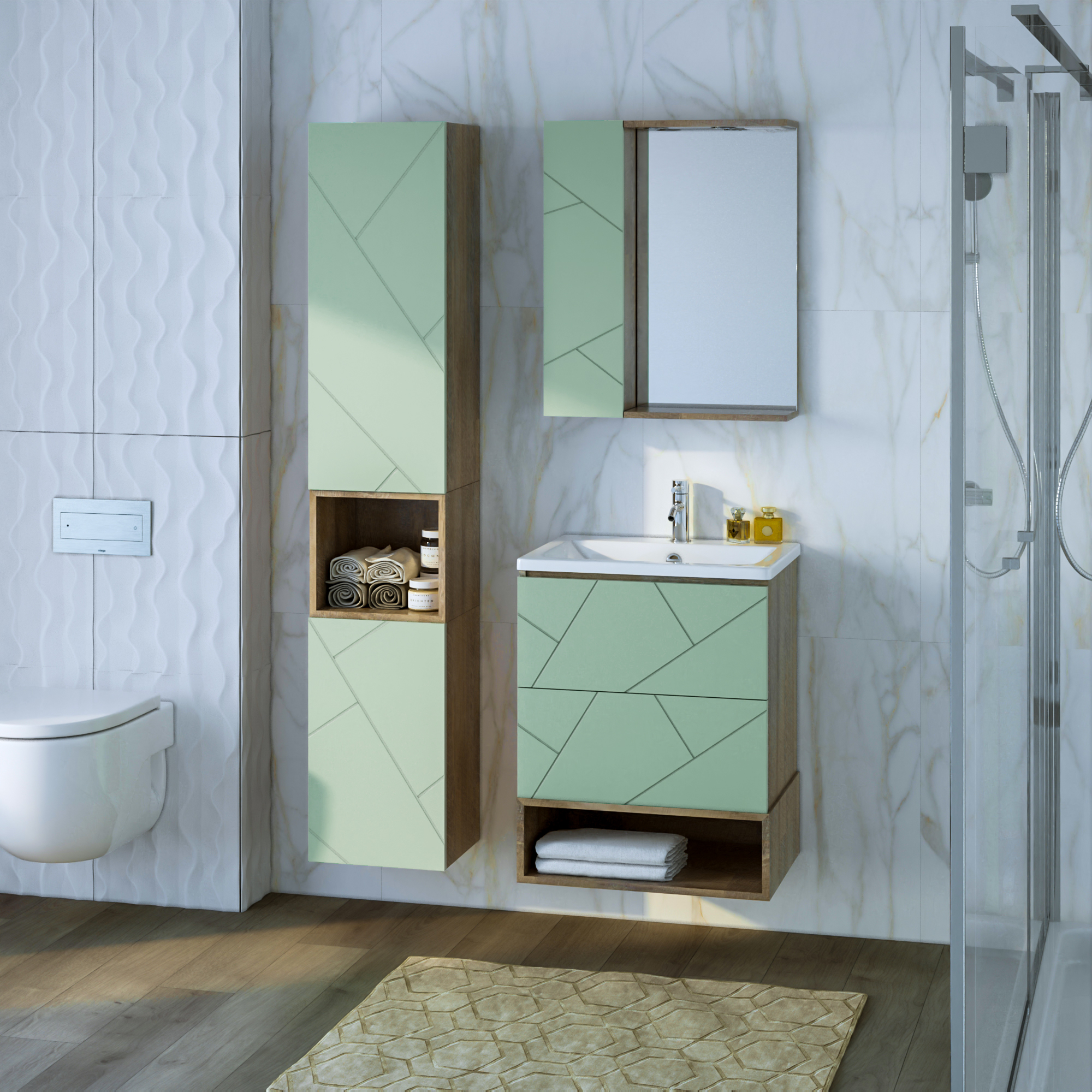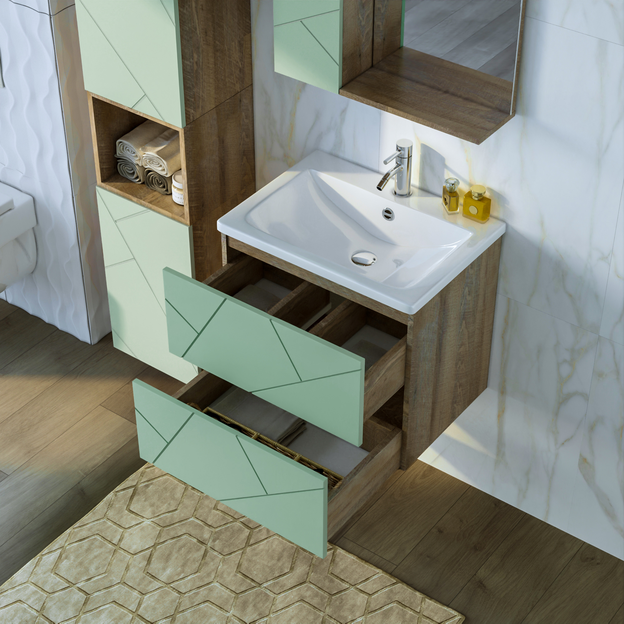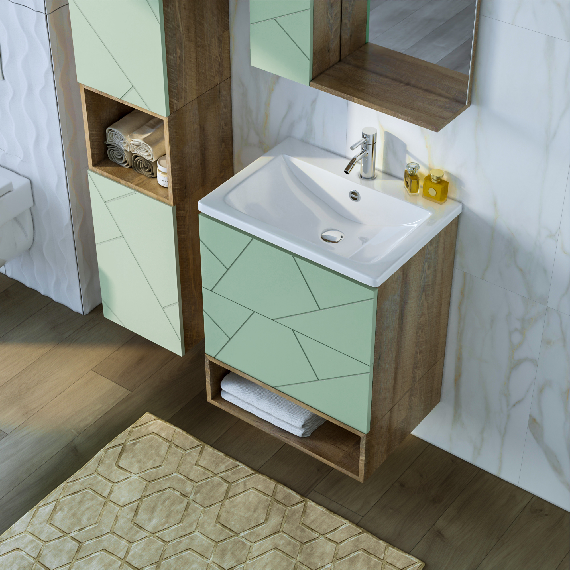 Тумба с раковинойу Бриклаер Кристалл 60 фисташка/дуб гранж песочный