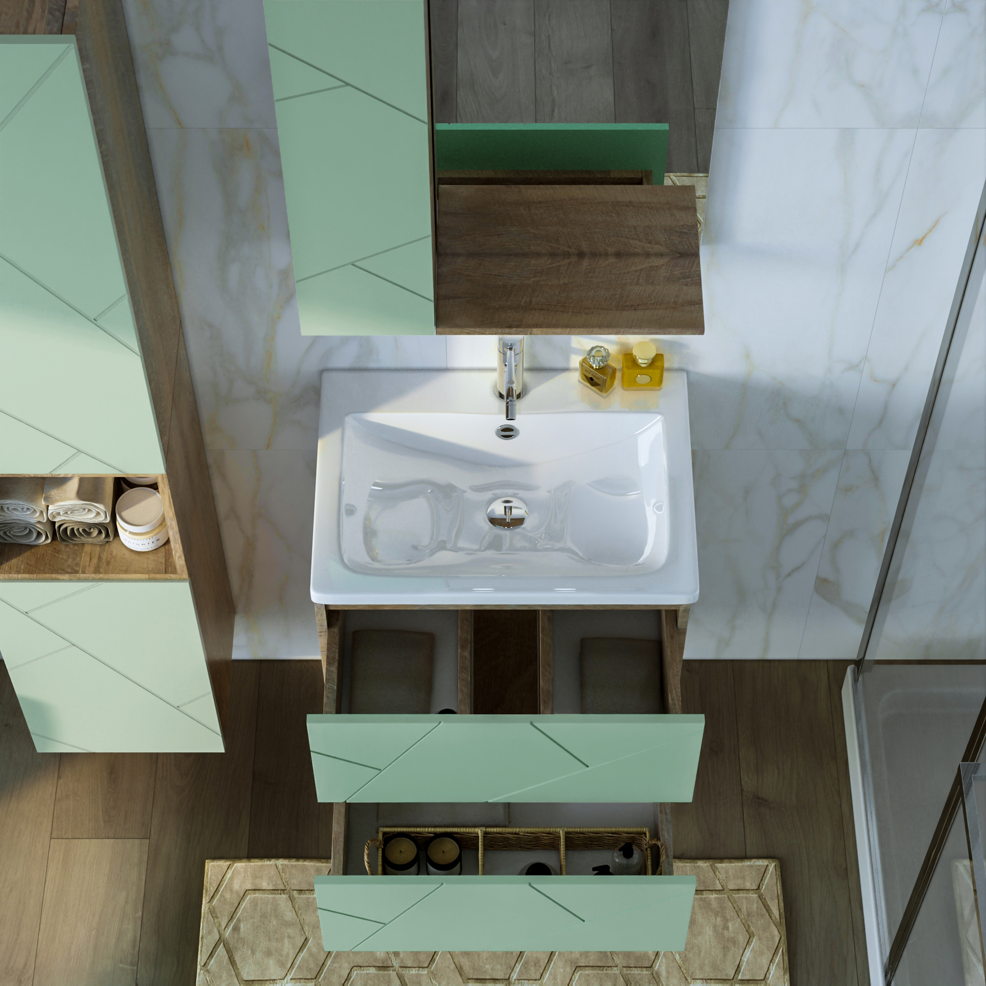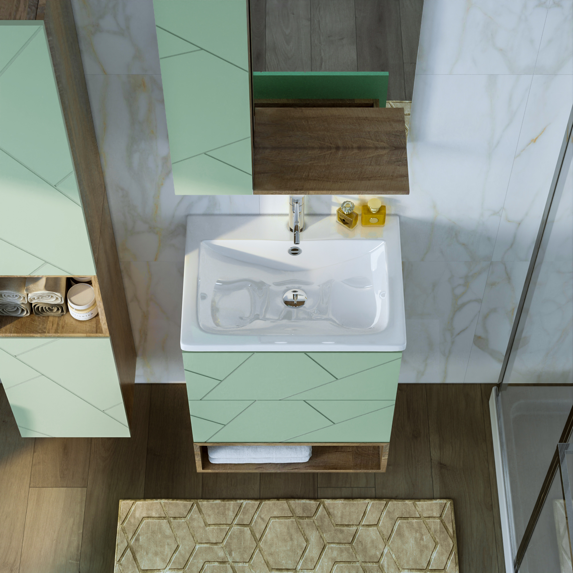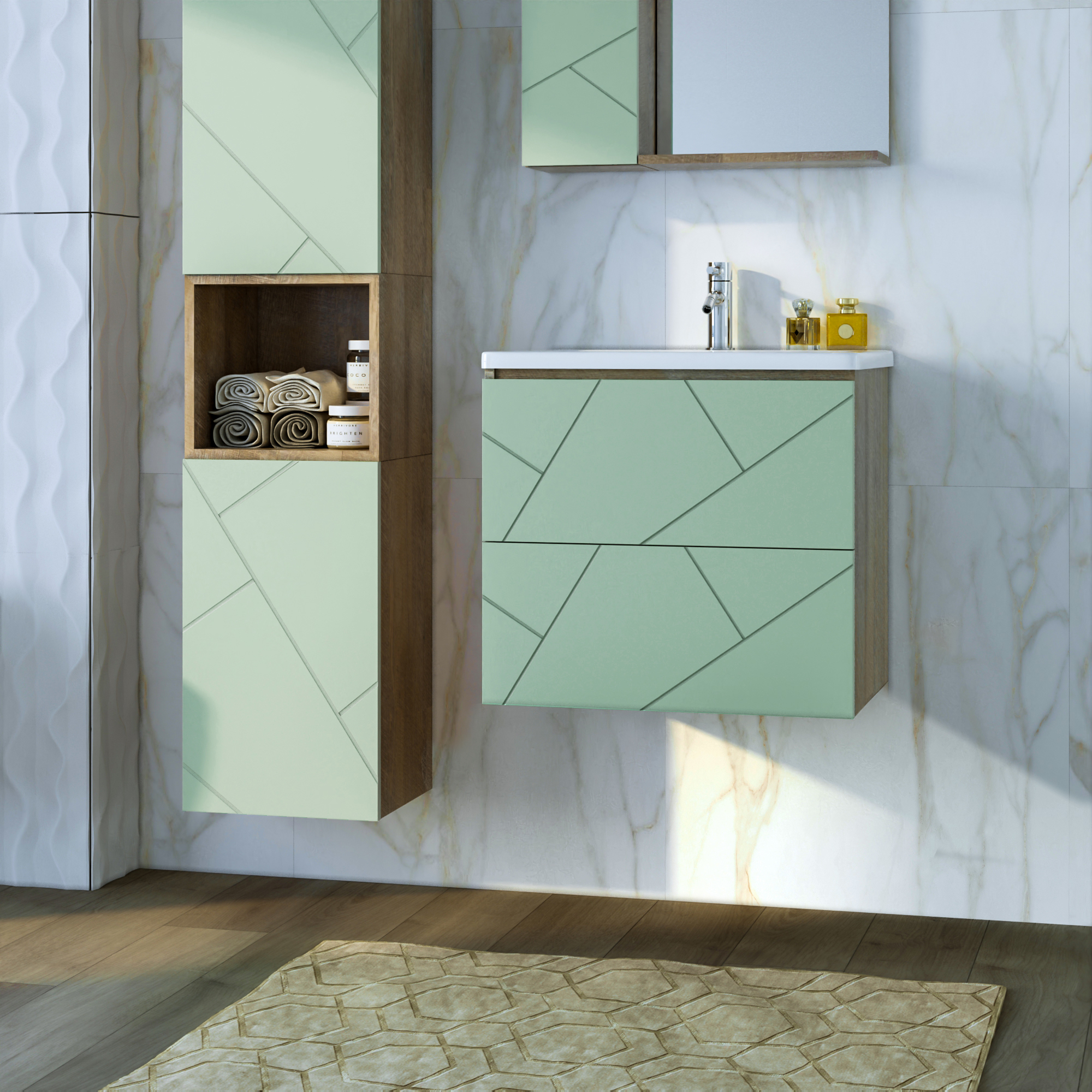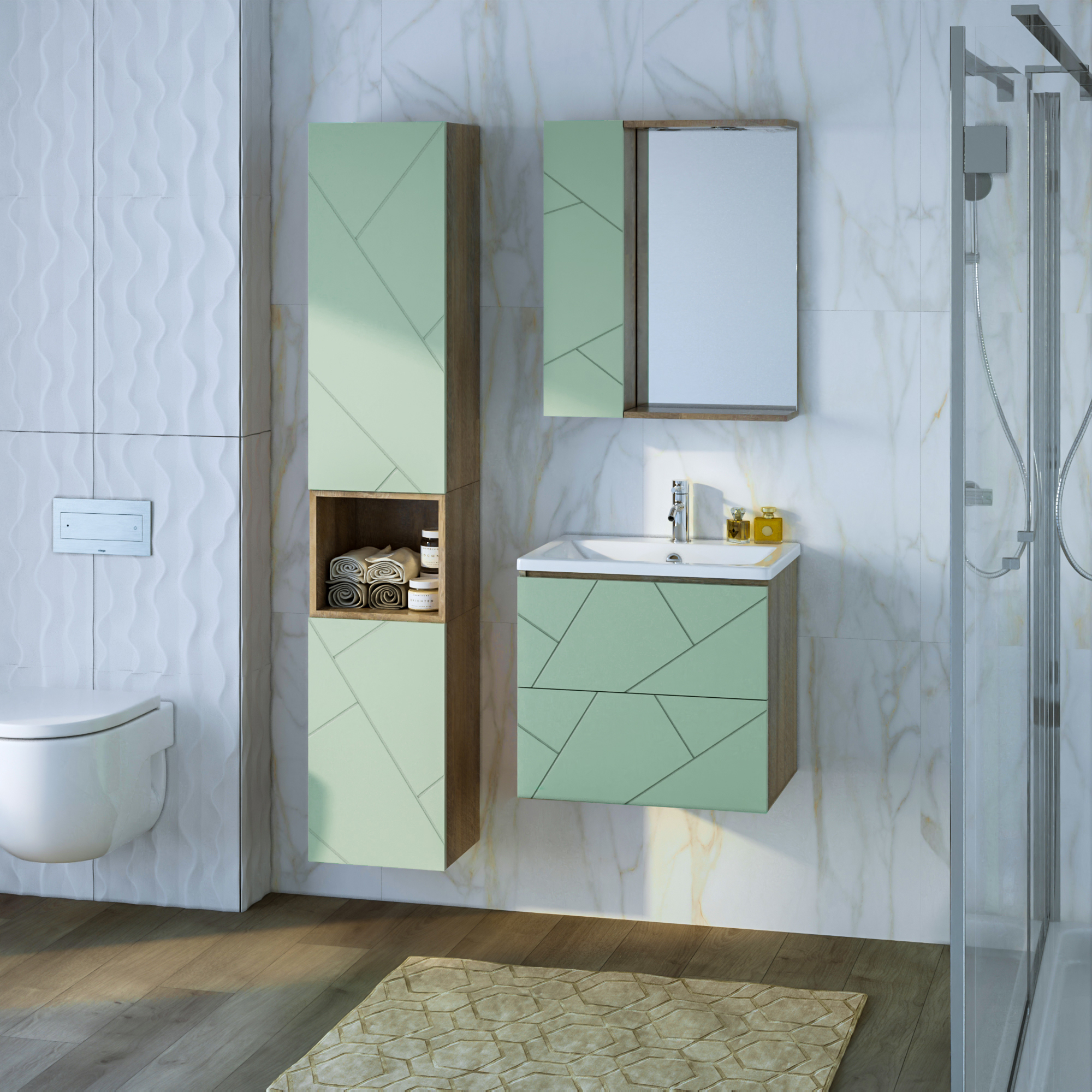 Тумба с раковинойу Бриклаер Кристалл 60 фисташка/дуб гранж песочный