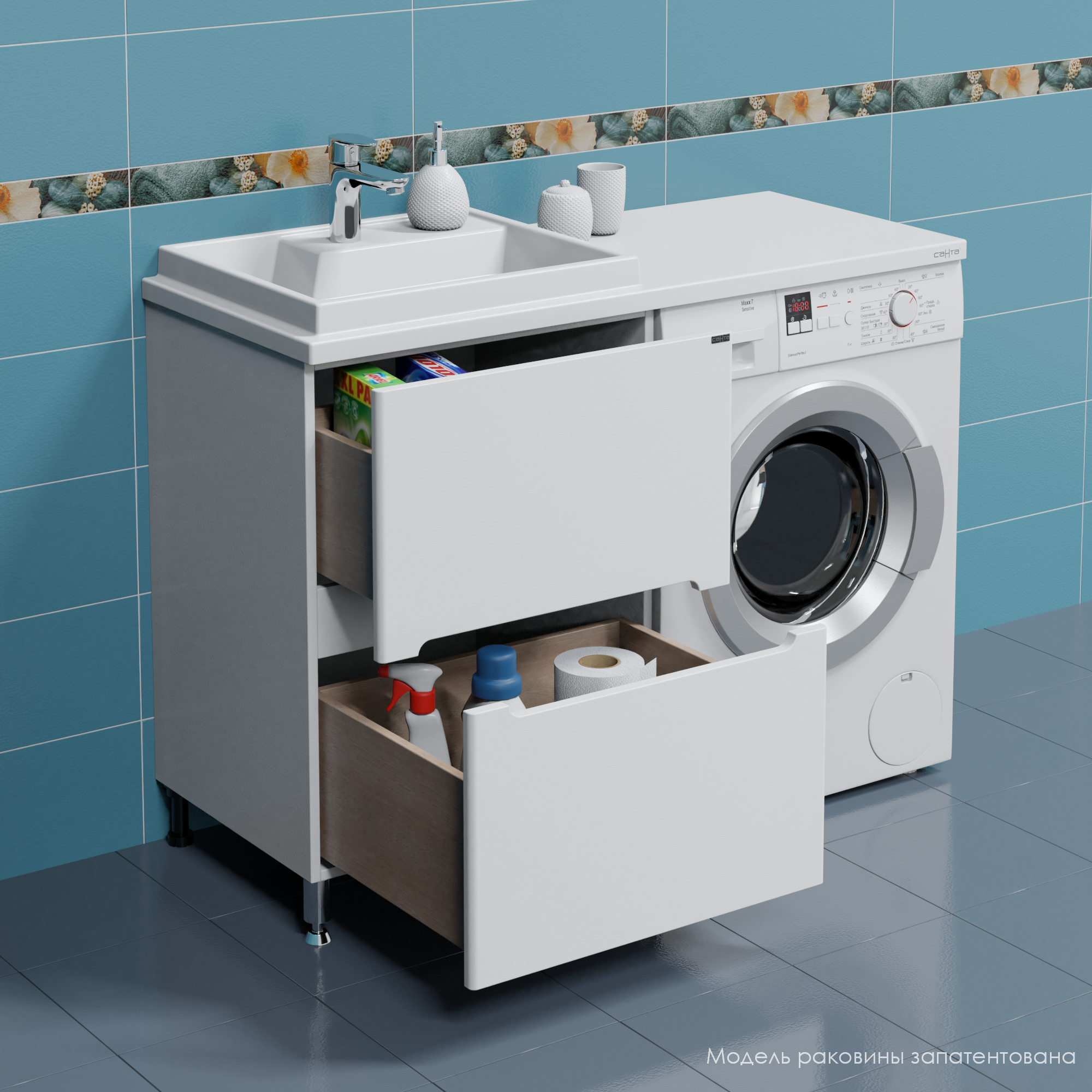 Тумба СанТа Лондон 59, ящики с раковиной над стиральной машиной Юпитер 120 L