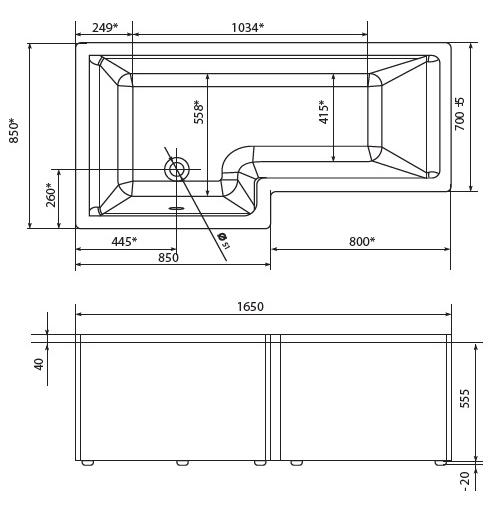 Асимметричная ванна Linea - отличный выбор для людей, предпочитающих принимать душ, но не желающих отказываться от комфорта купания в ванне. Ширина душевой зоны 85 см, что позволит удобно принимать душ человеку любой комплекции, ширина узкой части - 70 см, что соответствует ширине обычной ванны